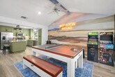 This 3-bedroom home in San Antonio, TX, is packed with amenities for an unforgettable vacation. Feel at home with features like a private pool, hot tub, fire pit, outdoor patio and dining area, BBQ grill, and ample parking. Inside, enjoy a fully stocked kitchen, TVs in each bedroom, and a dedicated workspace. Tucked away in a quiet neighborhood, this spacious 3-bedroom, 2-bathroom home accommodates up to 12 guests, making it perfect for family vacations or group trips. The game area offers ping pong, pool, and arcade games, while the backyard oasis includes a pool, hot tub, fire pit, and outdoor games for sunny Texas days and starry nights. Up to 2 dogs are allowed for $125 per stay, but no cats, please. Parking is available for up to 4 cars in the driveway and street. Explore nearby attractions like the San Antonio Zoo, River Walk, and The Alamo, all within 10 miles. Enjoy dining at the Pearl District or Historic Market Square, and discover the arts at La Villita Historic Arts Village. Conveniently get around by car or rideshare services like Uber and Lyft. Check-in is at 4pm and check-out is at 10am. Quiet hours are from 10pm to 8am. No parties are allowed, and violations may result in immediate termination of the stay. An exterior camera is installed for monitoring the cleaning team. Guests must be 21 years or older to book this property. Includes a dedicated workspace in the main bedroom, equipped with a desk and chair. A laptop computer is not included. Registration Number: STR-25-13500720 [SI]