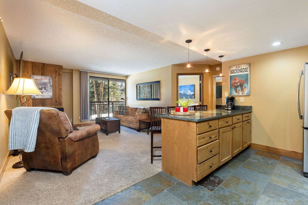 Feel at home in this exceptionally located 1-bedroom, 1-bath condo, perfect for couples or a small family. Recently remodeled and well-appointed, this condo is the ideal jumping-off point for all your adventures, with prime ski-in/ski-out access and all the perks of Main Street just a 2-minute walk away. Recently renovated with new furniture, window coverings, and an updated kitchen, this perfectly located unit is guaranteed to make for a memorable stay in Breckenridge. The thermostat-controlled gas fireplace provides ambiance and warmth for the second sleeping area. A 4-person breakfast bar invites you into a fully equipped kitchen. The private balcony with seating and seclusion provides a great place to unwind in the warm early sun. Amenities include a fully equipped kitchen, private balcony, flat-screen cable TV, PlayStation/Xbox consoles, and free Wi-Fi. Trails End Condominiums community amenities include a swimming pool, hot tub, sauna, on-site laundry facilities, and a ski storage closet. With the Quicksilver Ski-lift in your backyard, all of Breckenridge's most renowned runs are easily accessible. Main Street is also a stone's throw away for all your shopping and dining needs. Check-in is at 4:00 PM and check-out is at 10:00 AM. You will receive a text message the day before your arrival with detailed check-in instructions and a link to your digital guest guidebook. Registration Number: 280840003 [SI]