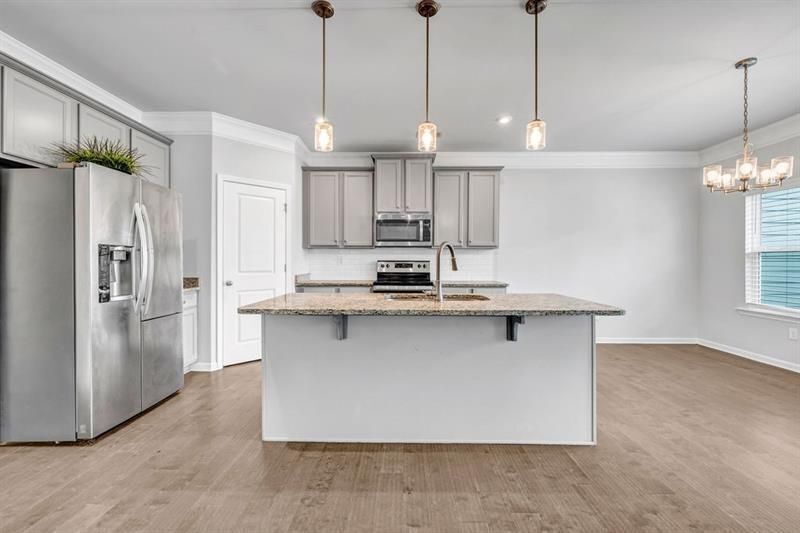 Convinient location. Ready to move. This townhome shines from the curb with fresh, modern lines and carries that elevated style inside with beautiful, cohesive finishes throughout. Step into an airy, open-concept main level designed for real life and easy entertaining. The chef’s kitchen overlooks the dining area and living room, so conversation flows as smoothly as the floor plan. You’ll appreciate the oversized island with breakfast bar for casual meals, abundant cabinetry for effortless organization, and a true walk-in pantry that keeps small appliances, snacks, and bulk buys neatly out of sight. Upstairs, the primary suite is enhanced by a graceful tray ceiling and a spa-style bath with dual vanities, soaking tub, and a separate glass-enclosed shower. Two additional bedrooms and a full hall bath offer flexible options for family, guests, or a dedicated home office. A versatile loft adds even more breathing room for a second TV space, play zone, or Peloton setup—whatever your season of life calls for. Out back, the covered patio invites year-round enjoyment, enjoy morning coffee, evening grilling, or a cozy book on a rainy afternoon, while the low-maintenance yard keeps weekends free for fun. Daily convenience comes easy with a two-car garage, a level driveway for stress-free parking, and smart storage throughout. All of this sits just minutes from Downtown Acworth’s shops and restaurants, close to everyday essentials, and with quick access to I-75 for an easy commute.