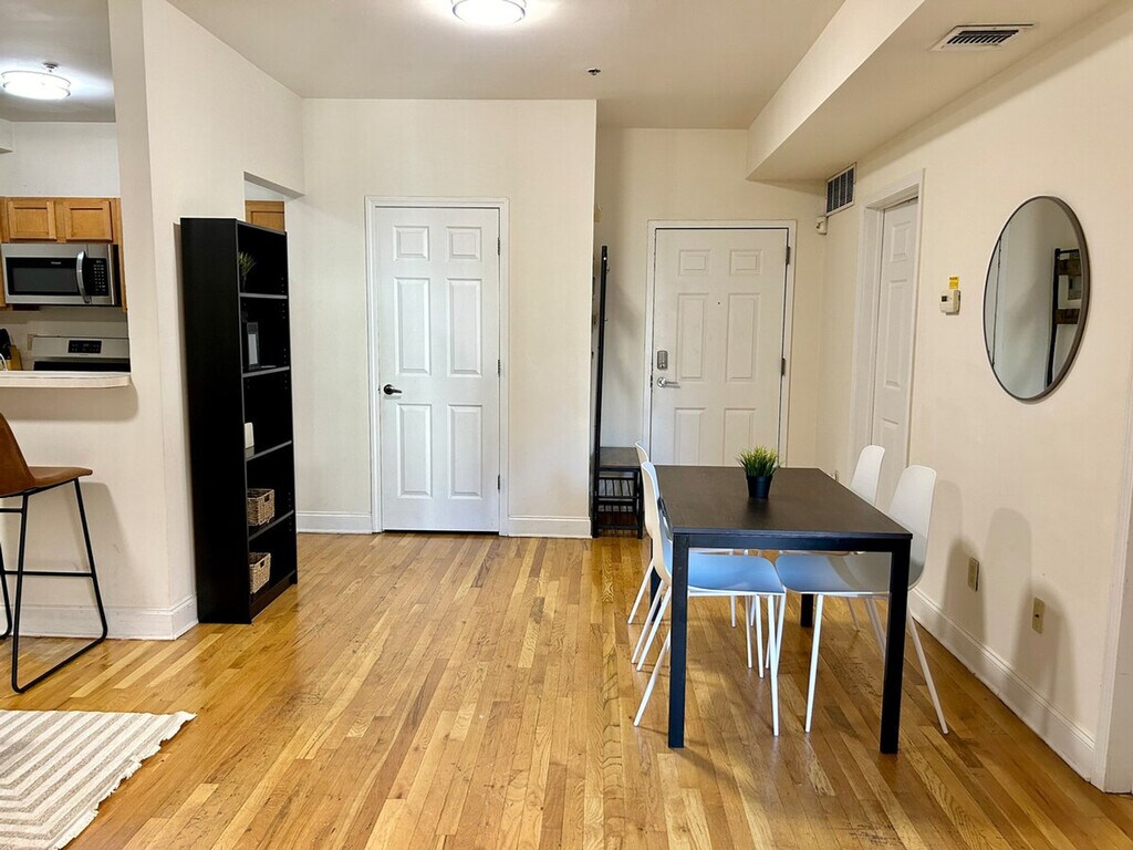 The advertised rate of $7,809/month is the lowest available price, based on a 30 day(s) stay with a move-in date of May 21, 2026. Rates vary depending on the duration of stay, season, and other parameters. For exact pricing and additional pricing components, please visit our website and enter your desired move-in and move-out dates. The rate is applicable when billed upfront; it can be higher if billed in multiple payments. Feel at home in this beautiful 2-bedroom apartment, located just a few blocks from the bus and train into Manhattan, where you can reach the heart of Times Square in 20 minutes. This apartment is great for remote work or for those taking summer classes. The open kitchen and living space is perfect for guests who love to cook and hang out together. The kitchen is stocked with pots and pans, cups, plates, and a working refrigerator, oven, microwave, and dishwasher. The apartment has hardwood floors and a tiled bathroom, and the carpet in both bedrooms is brand-new. There is a shared laundry room on every floor of the building. The location couldn't be better, with numerous bars, restaurants, coffee shops, and various other stores within walking distance. The nightlife in Hoboken on the weekends is a must. Each bedroom has been updated to have 1 twin bed and 1 lofted twin bed. The kitchen is equipped with cooking and dining basics and essentials, though perishable items are not provided. Includes 2 desks in each bedroom and speedy 1 Gig Wi-Fi. [SI]