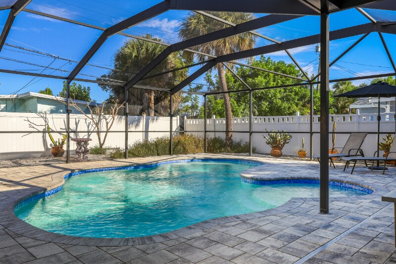 Property Id: 2141834 Welcome to this delightful 2-bedroom, 1-bathroom single-family home located in the heart of Saint Pete Beach, FL. Spanning 1,078 square feet, this beautifully furnished residence combines classic charm with modern conveniences. Built in 1954, the home features stunning hardwood, tile, and laminate flooring throughout, creating a warm and inviting atmosphere. Enjoy cooking in the fully equipped kitchen with appliances including a dishwasher, microwave, and refrigerator, or relax in the spacious living area that opens up to a lovely balcony or deck, perfect for sipping your morning coffee or unwinding after a long day. Step outside to discover your private oasis—complete with a refreshing swimming pool and a fenced yard, ideal for entertaining guests or enjoying family time. This home also offers practical features such as central heating and cooling, in-unit laundry with a washer and dryer, and two dedicated parking spaces including a carport. Located near picturesque parks, this property is just a short distance from the beach, making it perfect for those who crave an active outdoor lifestyle. Experience the best of beach living in this wonderful Saint Pete Beach home!