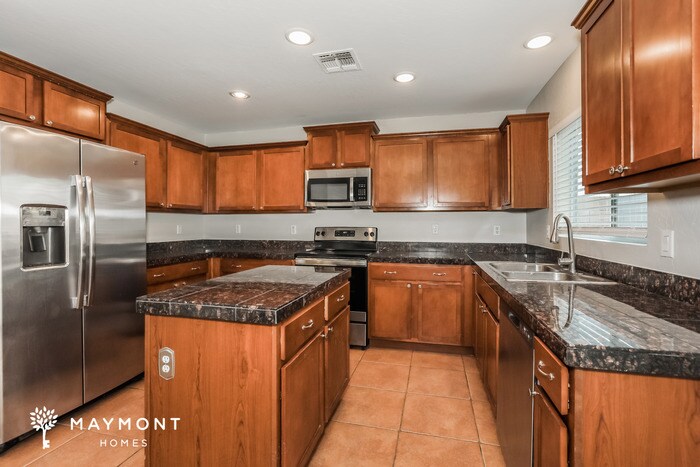 MOVE-IN READY This home is move-in ready. Schedule your tour now or start your application today. Monthly Recurring Fees: $20.00 - Smart Home $10.95 - Utility Management Maymont Homes is committed to clear and upfront pricing. In addition to the advertised rent, residents may have monthly fees, including a $10.95 utility management fee, a $25.00 wastewater fee for homes on septic systems, and an amenity fee for homes with smart home technology, valet trash, or other community amenities. This does not include utilities or optional fees, including but not limited to pet fees and renter’s insurance. This 4-bedroom, 3-bathroom home in San Tan Valley spans 2,424 square feet and combines comfort with convenience. Fresh interior paint gives every room a welcoming feel, while smart home features like a smart lock and thermostat keep life connected and secure. From the moment you step inside, the open floor plan sets the stage for easy living. The first floor includes a full bedroom and bath, ideal for flexible use, alongside a spacious living room, great room, and dining area. The kitchen is well-equipped with stainless steel appliances, an island, and rich cabinetry, flowing seamlessly into the breakfast area and open living spaces. Upstairs, the main bedroom offers double sinks, a walk-in closet, and generous square footage. Additional bedrooms are accompanied by walk-in closets and access to another full bath, creating a balanced and functional layout. Out back, a covered patio overlooks the private yard with plenty of space to make your own. The home is part of a community with amenities, adding another layer of convenience and leisure. With quick access to Loop 202 and a short drive to downtown Gilbert and Chandler, you will enjoy the best of both suburban peace and city access. Apply now and make this beautiful San Tan Valley home yours. *Maymont Homes provides residents with convenient solutions, including simplified utility billing and flexible rent payment options. Contact us for more details. This information is deemed reliable, but not guaranteed. All measurements are approximate. Actual product and home specifications may vary in dimension or detail. Images are for representational purposes only. Some programs and services may not be available in all market areas. Prices and availability are subject to change without notice. Advertised rent prices do not include the required application fee, the partially refundable reservation fee (due upon application approval), or the mandatory monthly utility management fee (in select market areas.) Residents must maintain renters insurance as specified in their lease. If third-party renters insurance is not provided, residents will be automatically enrolled in our Master Insurance Policy for a fee. Select homes may be located in communities that require a monthly fee for community-specific amenities or services. For complete details, please contact a company leasing representative. Equal Housing Opportunity. Estimated availability date is subject to change based on construction timelines and move-out confirmation. This property allows self guided viewing without an appointment. Contact for details.