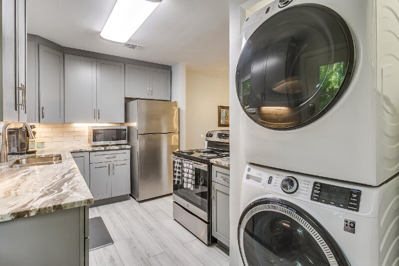Property Id: 2337485 Welcome to your new home at 4704 Collinwood, a delightful 2-bedroom, 1-bathroom single-family residence in the heart of Fort Worth, TX. This cozy 900 square foot home, built in 1948, was totally remodeled 2 years ago. Open floorplan from kitchen to living area. Central heating and cooling, wood floors throughout with tile in kitchen and bathroom. The well-equipped kitchen features a refrigerator, range oven, microwave, dishwasher, recently replace kitchen cabinets with undercounter lighting. Fully furnished with queen bed in the master and a trundle bed in the second bedroom. Bathroom has a soaking tub as well as a shower. The property offers a perfect retreat, complete with security cameras for added peace of mind and wired internet to keep you connected. With the convenience of an in-unit washer and dryer, you'll find laundry day is a snap. Outside, benefit from two dedicated parking spaces, including garage access. Located in a vibrant neighborhood, you're just minutes away from local parks, shopping, and dining options, making this home an ideal choice for anyone looking to enjoy the best of Fort Worth living.