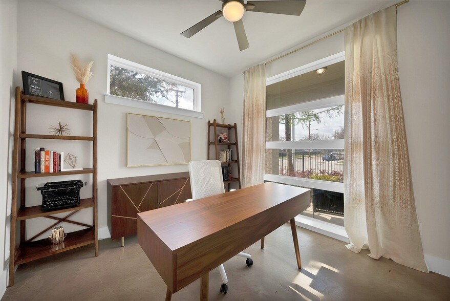 Elevated living in the sought-after Asher Place community - this corner-unit townhome stands out from the rest. Three stories, 3 bedrooms, 3.5 baths, and 1,752 square feet of thoughtfully designed space in the heart of Old East Dallas, with plenty of fenced yard space for a pet. The open-concept second floor features a chef's kitchen with KitchenAid appliances, counter-depth refrigerator with wood shelving, 5-burner gas cooktop with commercial grade vent, and an oversized island with built-in beverage fridge - all anchored by a cozy electric fireplace with mantel in the living room. Every bedroom includes an ensuite bath, with one bedroom per level for maximum privacy. The expansive primary suite on the third floor opens directly to an oversized private rooftop deck (18' x 18') - ideal for entertaining or unwinding with downtown skyline views. The primary bathroom features a large shower with dual shower heads with separate controls. Additional highlights include motorized window shades, tankless water heater, in-unit washer & dryer, and an attached 2-car garage with EV charging outlet. Within walking distance to Jimmy's Food Store and sandwiched between Lower Greenville and Deep Ellum. Minutes from Knox-Henderson, Lakewood, and the Dallas CBD. Corner lot within a gated community with front yard maintenance included, owner pays HOA dues.