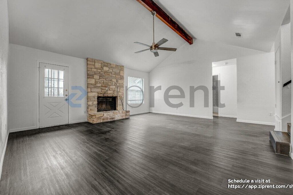 This property is available. Please inquire on this site to schedule a showing. This newly remodeled home is a 3-bedroom, 2-bathroom gem located just outside the vibrant East Austin area. This two-story residence offers a perfect blend of character, comfort, and modern finishes. As you enter, you'll immediately notice an expansive living area featuring high ceilings, large windows, and a cozy stone fireplace—ideal for family gatherings or quiet nights at home. The new, dark, hardwood floors add sophistication and the open floor plan seamlessly flows into the dining area, which is flooded with natural light. The newly updated kitchen stands out with bold blue cabinetry, stainless steel appliances, and beautiful countertop, providing a sleek and modern feel while maintaining its functional charm. Upstairs, the primary bedroom offers a peaceful retreat, separate from the rest of the house for added privacy with plenty of space and closet storage, along with an ensuite bathroom featuring dual vanities. The additional downstairs bedrooms are comfortable and conveniently located between the guest bathroom. The converted garage doubles as a 4th bedroom or secondary living space. The home also includes a dedicated laundry area with a new stylish washer and dryer. The massive backyard is perfect for pets, outdoor entertainment, barbecuing, or simply enjoying Austin’s beautiful weather. Pets are allowed with a $500 deposit. Available: NOW Heating: ForcedAir Cooling: Central, Wall Appliances: Refrigerator, Range Oven, Microwave, Dishwasher Laundry: In Unit Parking: Off Street, On Street, 3 spaces Pets: Dogs Allowed, Cats Allowed Security deposit: $2,400.00 Included Utilities: None. Tenant(s) assume responsibility for all utilities. Additional Deposit/Pet: $500.00 Disclaimer: Ziprent is acting as the agent for the owner. Information Deemed Reliable but not Guaranteed. All information should be independently verified by renter.