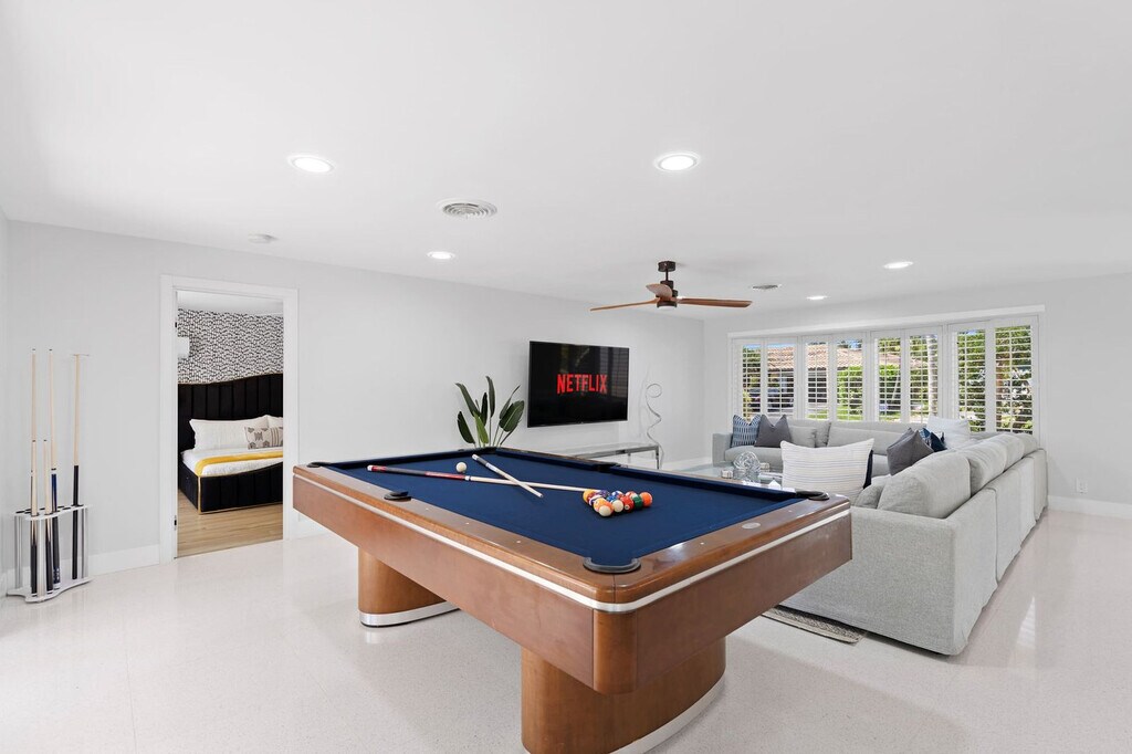 The advertised rate of $16,189/month is the lowest available price, based on a 30 day(s) stay with a move-in date of July 31, 2026. Rates vary depending on the duration of stay, season, and other parameters. For exact pricing and additional pricing components, please visit our website and enter your desired move-in and move-out dates. The rate is applicable when billed upfront; it can be higher if billed in multiple payments. Welcome to your Fort Lauderdale getaway! Feel at home in this luxury 4-bedroom, 3-bathroom home that comfortably accommodates up to 11 guests. This home is fully stocked with amenities, including a fully stocked chef’s kitchen with high-end stainless appliances, a large refrigerator, ample cabinetry, and a large island with high seating. The kitchen also features a coffee maker with drip, French press, bean grinder, and Keurig options. The living room features a 75" smart TV and a large plush sofa. Enjoy outdoor amenities such as an outdoor bar and patio, a BBQ grill, an outdoor shower, poolside loungers, corn hole, giant connect 4, beach essentials (chairs, umbrella, coolers, wagon and many more), and 2 bikes. Enjoy a private heated pool for an additional fee of $100 per night. Nestled in a prime Fort Lauderdale neighborhood, you're just 1 mile from Lauderdale by the Sea and a 19-minute drive to Las Olas. Nearby attractions include Shooters Waterfront, Greek Islands Taverna, Sandbar Grille, Twice Removed, and Dal Contadino Trattoria. You're also close to Fort Lauderdale Beach, Lauderdale-By-The-Sea, Coral Ridge Country Club, Bayview Park, and Cache Galleria Mall. No pets are allowed. No parties are allowed, and violations may result in immediate termination of the stay. An exterior camera is installed solely to monitor the cleaning team for quality and security purposes. Parking is available for a maximum of 5 cars. The primary guest must be at least 25 years old to book this property. Check-in is at 4pm and check-out is at 10am. Registration Number: VR-22040068 [SI]