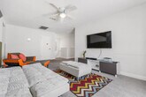 Welcome to our spacious 6-bedroom home located in the heart of Storey Lake Resort, Kissimmee, just 15 minutes away from Orlando's main attractions like Disney World. This centrally located property offers comfort and convenience for families and travel parties, ensuring you feel at home during your stay. This luxurious home is designed to make your Disney dream a reality. The loft living room is perfect for family gatherings, and you can enjoy friendly games of pool, air hockey, or foosball. The kitchen is fully equipped with all the necessary tools to prepare meals for your family. Sheets and towels are provided, along with a starter kit of toiletries and kitchen supplies. The property features a private screened-in pool, Jacuzzi, and a covered lanai with patio furniture. Pool heating is available for an additional fee of $45 per night, with a minimum three-night charge. Our grill is available for a one-time rental fee, which includes one propane tank. Situated in Storey Lake Resort, one of the newest resort communities in Orlando/Kissimmee, this property offers easy access to theme parks, dining, and shopping. The resort amenities include a 10,000 sq.ft. clubhouse with a state-of-the-art fitness center, a resort-style pool with a kids' splash area, a lazy river, a tiki bar, and more. This property is not suitable for parties. Quiet hours are from 10:00 PM to 7:00 AM. Only registered guests can stay overnight, and the use of charcoal grills is strictly prohibited, with a potential fine of up to $500 for violations. The pool heating system may not function optimally in extremely cold weather conditions and requires at least 24 hours to reach the desired temperature. A third party runs the resort facilities, and availability cannot be guaranteed. [SI]