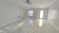 Step into this remarkable new construction rental where modern elegance meets everyday comfort. A striking frosted glass front door welcomes you into a bright, luxurious interior finished with large-format, high-gloss white marble-look tile that flows seamlessly throughout the entire home. The open, split floor plan creates an airy feel, offering plenty of space to relax or entertain. At the heart of the home, the kitchen is designed to impress with a stunning white quartz island featuring waterfall edges on both sides, a built-in recessed power outlet, and space for bar seating. You ll love the abundant lighting, generous counter space, and the sink perfectly positioned to overlook the backyard and oversized patio (32x14) ideal for enjoying Florida living. The bedrooms are comfortably sized, while the primary suite offers a private retreat with a beautifully designed bathroom. Enjoy a spacious walk-in shower with a custom glass enclosure and tile that extends to the ceiling, along with an 8 x 6 walk-in closet for ample storage. For added convenience, the home includes a washer and dryer located in the garage. With its sleek finishes, thoughtful layout, and move-in-ready appeal, this home is a standout rental opportunity schedule your showing today.