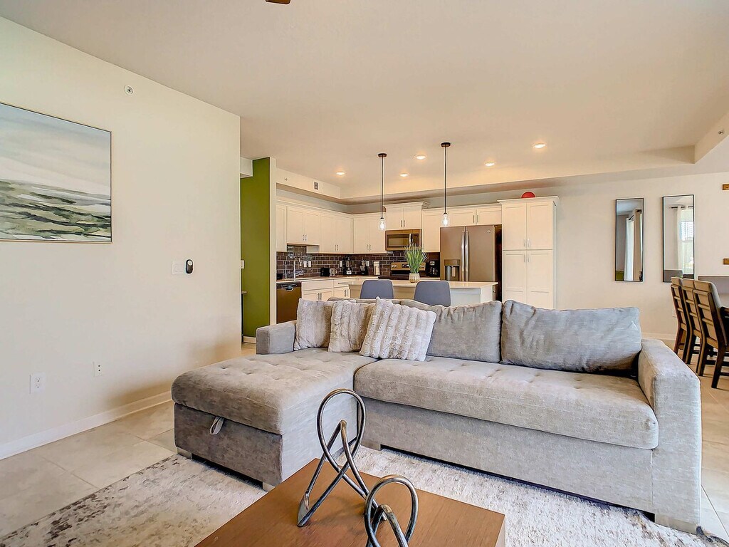 Experience the excitement of the new Epic Universe park this May 22nd by staying in this fresh and amazing condo at Storey Lake resort. Perfect for a comfortable and relaxing stay, this condo offers unbeatable comfort just minutes away from world-famous attraction parks, restaurants, and shopping malls. The property features a fully equipped kitchen, air conditioning, three smart TVs, and a patio/balcony with furniture. Enjoy free parking on the premises and high-speed internet. The master bedroom includes a king-size bed, smart TV, and bathroom, while the second bedroom offers a full-size bed and a single bed with a smart TV. The living room is equipped with a sofa bed for two people and another for one person, making it ideal for family stays. Guests at Storey Lake have unlimited access to all the wonderful resort amenities, including two luxury clubhouses, a gym, spa center, heated swimming pools, lazy river, beach volleyball field, basketball court, and mini-golf and lagoon for kayaking, both available for an additional fee. The condo comes with essentials for the first night, including toiletries and kitchen supplies. The kitchen is fully equipped with an island, and the dining room accommodates eight people, making it perfect for gatherings. For those looking to enhance their stay, optional services are available for an extra cost, including Pack and Play, high chair, early check-in, and late check-out. A $200 credit is available for extras for stays of 30 nights or more, applicable to additional services upon availability and request. Located close to major attractions, this condo is just 6.7 miles from Disney Springs, 8.8 miles from SeaWorld Parks, and 12 miles from Universal Studios. The Orlando International Airport is 21.1 miles away, and the Orange County Convention Center is 9.5 miles away. For shopping enthusiasts, The Loop Shopping Center is 3.3 miles away, and the Orlando International Premium Outlets are 13.5 miles away. Transportation options include the SunRail Station 5.2 miles away, with Uber and Lyft available. Nearby supermarkets include a 24-hour Super Walmart and Super Target. Guests must be at least 18 years old to book a reservation. No unregistered guests are allowed, and smoking is not permitted inside. Pets are not allowed. The property is exclusively for vacation use, and filming or use as a warehouse is not permitted without prior authorization. Access to the resort requires sharing a guest list to create and share QR codes, which is mandatory for all guests. The property is keyless, with a code provided prior to check-in. Our team is available to ensure everything goes as planned during your stay. A safety protocol is in place to ensure the well-being of guests and personnel, with pre-check-in cleaning and check-out care following WHO and HSE standards. [SI]
