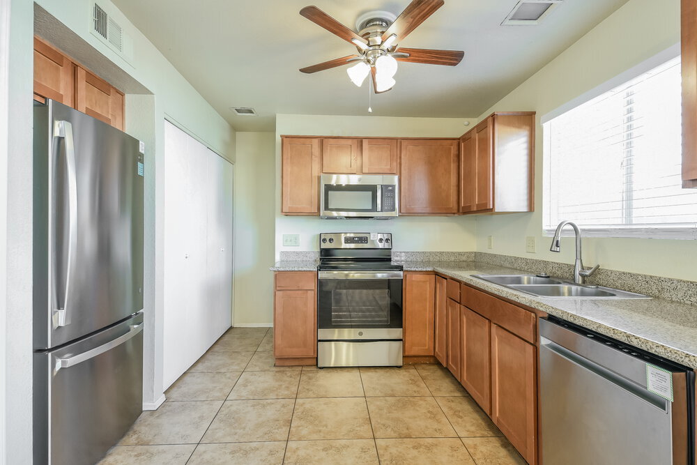 Tenga en cuenta que nuestras casas están disponibles por orden de llegada y no se reservan hasta que el arrendamiento sea firmado por todos los solicitantes y se cobren los depósitos de garantía. ¿Quieres hacer un tour por tu cuenta? Haga clic en el botón “Mostrarse” en la lista de esta casa o llame para registrarse para una presentación autoguiada en el momento que mejor le convenga. Esta casa cuenta con la aplicación para casa inteligente Progress Smart Home - Progress Residential, que te permite controlar la casa de forma segura desde cualquiera de tus dispositivos. Obtenga más información en Imagínese viviendo en esta casa de alquiler de tres dormitorios y dos baños en Glendale, Arizona, con un garaje adjunto, un patio privado con vallas y un interior renovado. La sala de estar de esta elegante casa de un solo piso cuenta con pisos de baldosas, un ventilador de techo iluminado y varias ventanas grandes que permiten la entrada de abundante luz natural. Un comedor con un candelabro tradicional fluye hacia la cocina, donde encontrará un juego completo de electrodomésticos de acero inoxidable y un lavabo doble. Una despensa de almacenamiento ofrece espacio adicional. En la suite principal, le encantará tener acceso al aire libre a través de puertas corredizas de vidrio. Además, hay un amplio vestidor y una impresionante ducha con azulejos en el baño privado contiguo. Comuníquese con nosotros pronto para programar su visita personal a esta casa de alquiler de Glendale que acepta mascotas.