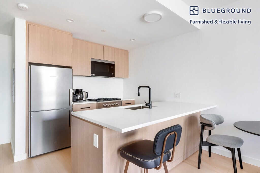 Discover the best of Brooklyn, with this one bedroom apartment in South Williamsburg. It’ll be easy to simply show up and start living in this beautifully furnished apartment with its fully equipped kitchen, pretty living room, and our dedicated, on-the-ground support. (ID #NYC2133) The advertised rate of $3,800/month is the lowest available price, based on a 1 month(s) and 3 day(s) stay with a move-in date of December 24, 2025. If you’re looking for a 1-year stay, the rate is $5,660/month. Rates vary depending on the duration of stay, season, and other parameters. For exact pricing and additional pricing components, please visit our website and enter your desired move-in and move-out dates. The rate is applicable when billed upfront; it can be higher if billed in multiple payments. Brokers are welcome to reach out. Were you looking for an unfurnished lease? Try Blueground instead and upgrade from unfurnished to furnished living: - Furnished at rates comparable to unfurnished - No setup or furniture costs - save thousands - Move-in ready - save time, just bring your suitcase Designed with you in mind Thoughtfully designed with bespoke finishes, modern furnishings, and a fully equipped kitchen, you’ll enjoy that “I’m home” feeling with this Blueground apartment. Whether you’re lounging in your sophisticated living room streaming the latest and greatest entertainment on the smart TV or premium wireless speaker, or getting some well-earned rest on the superior quality mattress with luxury linens, you’ll fall in love with everything this South Williamsburg apartment has to offer. This apartment also offers in-apartment laundry. Sleeping arrangements Queen Bed, 63in/160cm Amenities Building amenities unique to this one bedroom apartment include an on-site: - Doorman - Dryer - Elevator - Swimming pool - Washing machine - Lounge - Rooftop BBQ - Squash court Arrival and ongoing support The entire apartment is yours to enjoy! Throughout your stay, you’ll have access to our Client Experience team through the Blueground App. You can schedule additional cleanings, submit maintenance requests, and view our neighborhood recommendations with just a few taps. We’ll share all details upon confirmation of your stay. Other things to note Building amenities may have an extra cost. This Blueground apartment has flexible lease options, allowing you to book it for one month, a year, or more. Brokes CYOF. We take great pride in ensuring every photo displayed is shot in our own units with our actual furnishings. That said, we regularly refresh our decor and furniture arrangement, which may differ from what’s pictured. [SI]