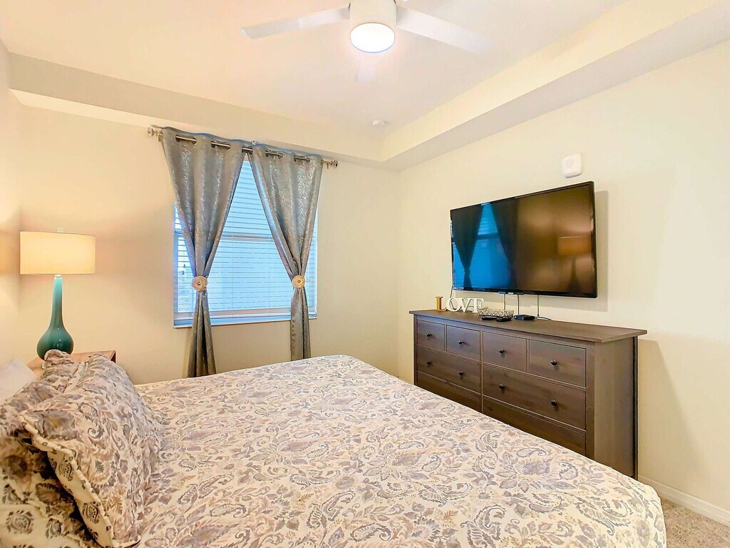 Experience the excitement of the new Epic Universe park this May 22nd by booking your stay in this cozy condo at Storey Lake resort. Perfect for a comfortable and relaxing stay, this home offers unbeatable comfort just minutes away from world-famous attraction parks, restaurants, and shopping malls. Enjoy unlimited access to two luxury clubhouses and resort amenities, including pools and fun activities near the unit. This condo is thoughtfully designed for your comfort, featuring a fully equipped kitchen, air conditioning, bed linens, two smart TVs with cable, patio furniture, hair dryers, a washer, ironing supplies, free parking, and high-speed internet. The property includes a master bedroom with a king-size bed, smart TV, and full bathroom, a bedroom with two twin beds and a full bathroom with a tub, and a living room with a smart TV and a queen-size sofa bed. Optional paid services include a pack and play, high chair, early check-in, and late check-out. Please message us prior to acquiring any service to check availability. Located right on Osceola Parkway, guests can easily access all the world-famous attraction parks, restaurants, shopping malls, and more within only a few minutes. With easy access to Florida highways such as SR 535, I-4, 417, US 192, I-Drive, and Poinciana Blvd, you'll find sport courts, a children’s playground, a resort-style swimming pool with a splash park and water slides, a restaurant, a bar, a lazy river, and activities such as mini-golf and kayaking. Guests must be at least 18 years old to book a reservation. No unregistered guests are allowed, and no smoking is permitted inside. Pets are not allowed. The property is exclusively for vacation use, and filming without prior authorization is not accepted. The home is standalone with no shared amenities, and a safety protocol is in place to ensure the well-being of guests and personnel. Check-in is keyless, with a code provided prior to your check-in time. Our team is available to assist you throughout your stay. [SI]