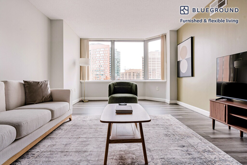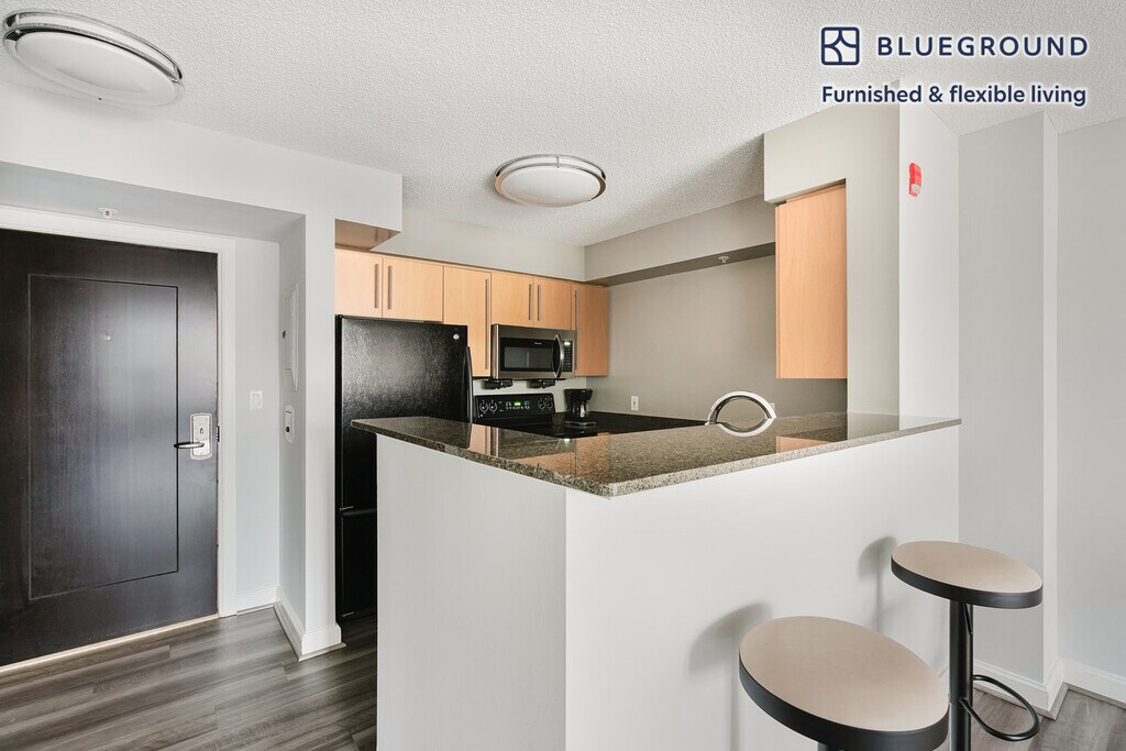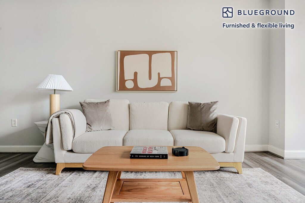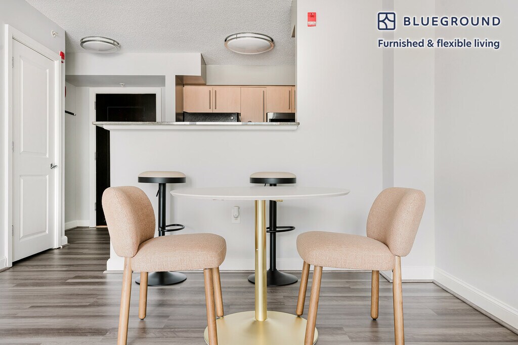 Show up and start living from day one in Bethesda with this sophisticated one bedroom Blueground apartment. You’ll love coming home to this thoughtfully furnished, beautifully designed, and fully equipped Woodmont Triangle home. (ID #WDC1221) The advertised rate of $1,870/month is the lowest available price, based on a 1 month(s) and 19 day(s) stay with a move-in date of January 30, 2026. If you’re looking for a 1-year stay, the rate is $2,160/month. Rates vary depending on the duration of stay, season, and other parameters. For exact pricing and additional pricing components, please visit our website and enter your desired move-in and move-out dates. The rate is applicable when billed upfront; it can be higher if billed in multiple payments. Brokers are welcome to reach out. Were you looking for an unfurnished lease? Try Blueground instead and upgrade from unfurnished to furnished living: - Furnished at rates comparable to unfurnished - No setup or furniture costs - save thousands - Move-in ready - save time, just bring your suitcase Designed with you in mind As with any Blueground apartment, you’ll find a thoughtfully designed space complete with beautiful furniture and a fully equipped kitchen in this one bedroom property. And, thanks to our superior quality mattresses, luxury linens, and towels, you can relax knowing you’ll always feel comfortably at home. When you’re ready for some fun, you can take in the Bethesda vibes or bring the entertainment to you with the premium wireless speaker or smart TV. This apartment also offers in-apartment laundry. Sleeping arrangements Queen Bed, 63in/160cm Amenities Building amenities unique to this one bedroom apartment include an on-site: - Doorman - Dryer - Elevator - Washing machine - Pets allowed - Rooftop BBQ Arrival and ongoing support The entire apartment is yours to enjoy! Throughout your stay, you’ll have access to our Client Experience team through the Blueground App. You can schedule additional cleanings, submit maintenance requests, and view our neighborhood recommendations with just a few taps. We’ll share all details upon confirmation of your stay. Other things to note Building amenities may have an extra cost. This Blueground apartment has flexible lease options, allowing you to book it for one month, a year, or more. Pets are welcome, though weight limits and breed restrictions apply and may incur fees. We take great pride in ensuring every photo displayed is shot in our own units with our actual furnishings. That said, we regularly refresh our decor and furniture arrangement, which may differ from what’s pictured. [GO]