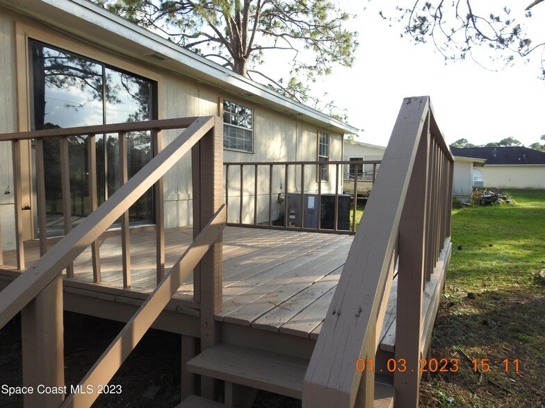 This cozy 2 bedrooms house has vinyl floors through out the house and a family room that could possible be a 3rd bedroom, vaulted ceiling, great room concept, front open porch and the convenience wood back deck offer you a nice feeling of nature perfect to enjoy your coffee in the mornings. Open parking space- no garage.