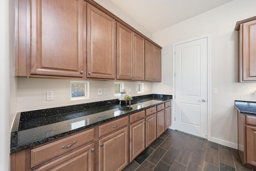 Highly desired 3-bedroom, 2.5-bath home with flex room is located in the heart of Victory at Verrado. This home offers beautiful curb appeal with a brick-paved driveway and inviting front porch--perfect for relaxing and enjoying the sunset views. Ideally situated across from a community park, a wonderful spot to gather with neighbors and take in the charm of the Victory lifestyle. Step inside to a gorgeous open floor plan featuring wood-look tile flooring, a dramatic 12' vaulted coffered entry, newly custom paint in main areas and soaring 10' ceilings throughout. The stylish kitchen boasts abundant 42'' upper cabinetry, granite countertops, a large island with breakfast bar, stainless steel appliances with gas range, refrigerator, RO system, and a spacious pantry A bonus storage or perfect wine storage area provides added flexibility for your lifestyle. The primary suite is a true retreat, offering a spacious walk-in closet, dual vanity, and a beautifully appointed expanded walk-in shower. Enjoy plantation shutters throughout and a sliding glass door with electric shades for effortless indoor/outdoor entertaining. Step outside to your serene backyard oasis, complete with a large covered patio, synthetic turf, extended pavers, and Aqua Science mistersperfect for relaxing or entertaining year-round. Laundry room includes upper cabinets, washer and dryer. The garage includes built-in cabinetry, a soft water system, and sleek epoxy flooring. Perfectly situated on a picturesque walking path lot, this home offers the ideal balance of relaxation and active living. The Victory community showcases championship golf, resort-style pools, a premier fitness center, tennis and pickleball courts, and exceptional dining all complemented by a vibrant calendar of community activities. Experience the best mountainside living in Victory at Verrado!