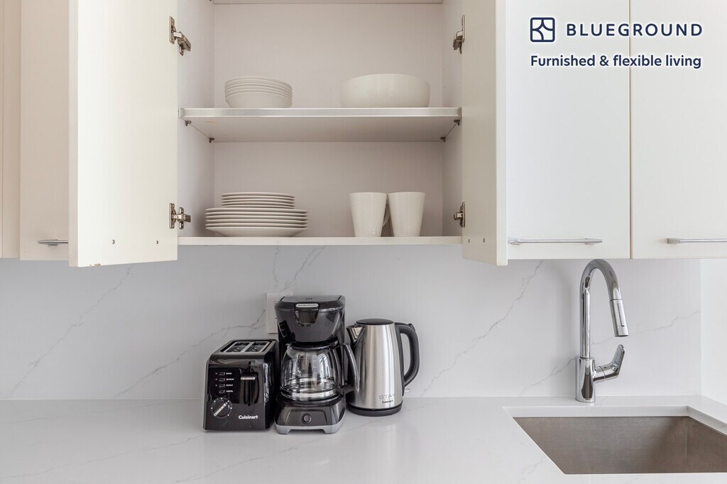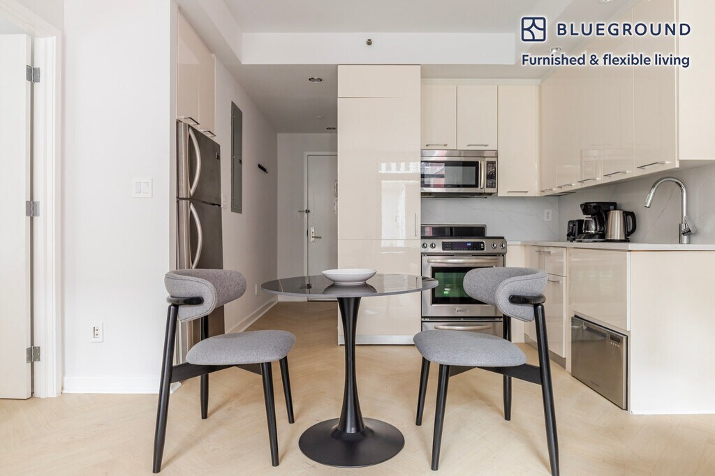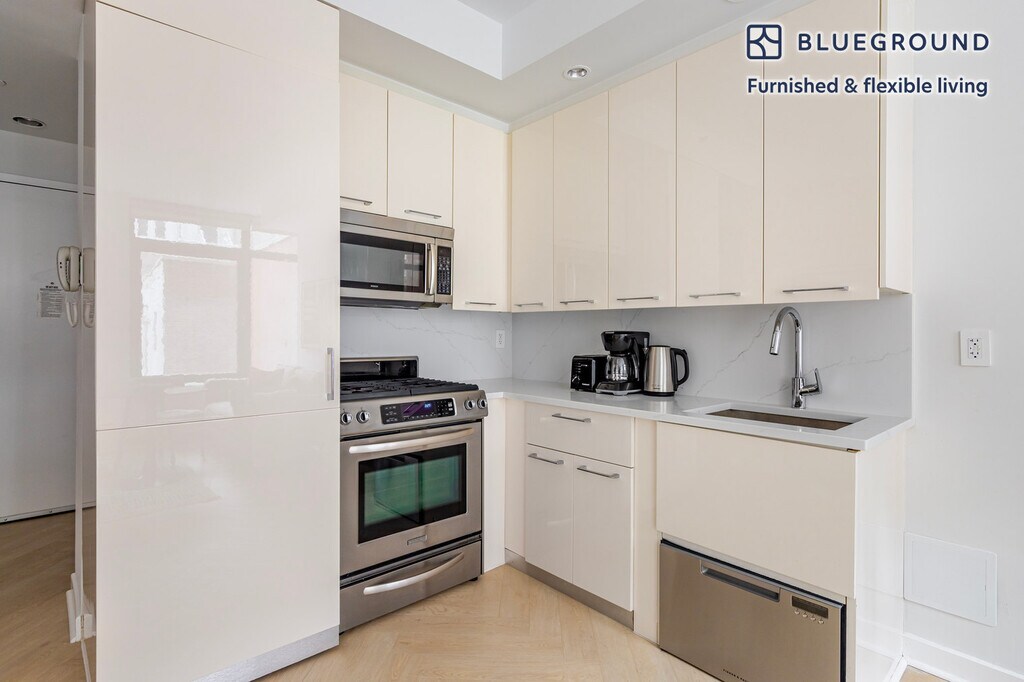 Show up and start living from day one in New York with this cheery one bedroom Blueground apartment. You’ll love coming home to this thoughtfully furnished, beautifully designed, and fully equipped Murray Hill home. (ID #NYC2095) The advertised rate of $5,530/month is the lowest available price, based on a 12 month(s) stay with a move-in date of May 6, 2026. Rates vary depending on the duration of stay, season, and other parameters. For exact pricing and additional pricing components, please visit our website and enter your desired move-in and move-out dates. The rate is applicable when billed upfront; it can be higher if billed in multiple payments. Brokers are welcome to reach out. Were you looking for an unfurnished lease? Try Blueground instead and upgrade from unfurnished to furnished living: - Furnished at rates comparable to unfurnished - No setup or furniture costs - save thousands - Move-in ready - save time, just bring your suitcase Designed with you in mind As with any Blueground apartment, you’ll find a thoughtfully designed space complete with beautiful furniture and a fully equipped kitchen in this one bedroom property. And, thanks to our superior quality mattresses, fully stocked linens, and towels, you can relax knowing you’ll always feel comfortably at home. When you’re ready for some fun, you can take in the New York vibes or bring the entertainment to you with the premium wireless speaker or smart TV. This apartment also offers in-apartment laundry. Sleeping arrangements Queen Bed, 63in/160cm Amenities Building amenities unique to this one bedroom apartment include an on-site: - Doorman - Dryer - Elevator - Washing machine - Lounge Arrival and ongoing support The entire apartment is yours to enjoy! Throughout your stay, you’ll have access to our Client Experience team through the Blueground App. You can schedule additional cleanings, submit maintenance requests, and view our neighborhood recommendations with just a few taps. We’ll share all details upon confirmation of your stay. Ideally Located This furnished apartment is located in Murray Hill, a lively Midtown neighborhood. The active nightlife scene makes it increasingly ideal for youngsters and recent graduates. Simultaneously, families are relocating here as there are many good schools in close proximity. Murray Hill offers various destinations for culture-lovers. Namely, the New York Public Library and Bryant Park draw residents in from the rest of the city. Grand Central Station is only 5 minutes from Murray Hill by subway. Other things to note Building amenities may have an extra cost. This Blueground apartment has flexible lease options, allowing you to book it for one month, a year, or more. Brokes CYOF. We take great pride in ensuring every photo displayed is shot in our own units with our actual furnishings. That said, we regularly refresh our decor and furniture arrangement, which may differ from what’s pictured. [SI]