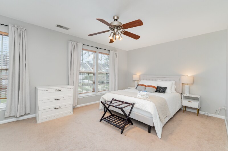 Property Id: 2249925 FULLY FURNISHED & UTILITIES INCLUDED! Just bring your favorite streaming services. Rental includes: Linens, Bedding & Kitchen Items, Parking & Free On-Site Laundry. Everything shown in photos is included with your stay. Unit is currently tenant occupied. No walk-up tours. Located in the University City area, this spacious, well-maintained 2 bedroom + 2.5 bath townhouse sits in a quiet, family-oriented community close to highways and shopping. Master suite has a large walk-in closet, private ensuite with waterfall shower head and ample storage. Second bedroom features spacious closet and semi-ensuite with tub and in-bathroom storage. Both private and semi-ensuites are full bathrooms. Main floor has: living room, play room/office, sunroom, full kitchen, in-unit laundry, powder room, vaulted ceilings, and two storage closets. Community pool. Amenities: -2 Parking Spots -Landscaping Included -A/C & Heat: Programmable energy efficiently thermostat -Energy efficient appliances -In-unit Washer and Dryer included -Attached locking storage unit (8' x 8' x 3.5') -Bosch Whisper-Quiet Dishwasher, Built-In Microwave, Garbage Disposal, Fridge, Stove, and Pot Rack -Lots of natural light -Ample storage space Neighbourhood Details: -Cabarrus County Public Schools (Harrisburg Elementary, Hickory Ridge Middle/High) -Minutes to shopping, restaurants, 24 hour pharmacy, urgent care, I-485, 49 -Proximity to UNCC, Speedway, I-85 Lease Details: -Application Fee: $47 (Processed online by TransUnion SmartCheck Premium: Full Credit Report (Soft Check), National Criminal Background Check (including most wanted databases and sexual offender, National Eviction Report) -Full Tenant Selection Policy is available upon request -Monthly Renter's Insurance is Required Pets: -This community is a pet friendly, walkable community with safe sidewalks. Close to greenways and parks. -There is a two dog limit with a weight restriction of 100lbs ea. -Pets must have up to date vaccinations