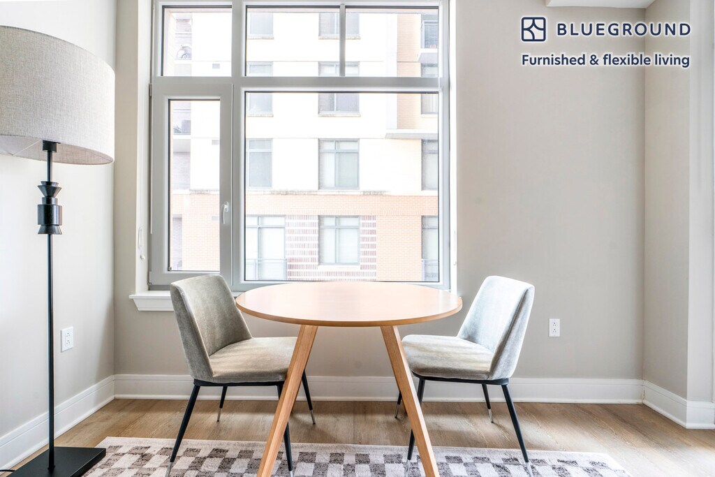Show up and start living from day one in Bethesda with this pretty one bedroom Blueground apartment. You’ll love coming home to this thoughtfully furnished, beautifully designed, and fully equipped Woodmont Triangle home. (ID #WDC1099) The advertised rate of $2,160/month is the lowest available price, based on a 1 month(s) and 27 day(s) stay with a move-in date of November 23, 2025. If you’re looking for a 1-year stay, the rate is $2,970/month. Rates vary depending on the duration of stay, season, and other parameters. For exact pricing and additional pricing components, please visit our website and enter your desired move-in and move-out dates. The rate is applicable when billed upfront; it can be higher if billed in multiple payments. Brokers are welcome to reach out. Were you looking for an unfurnished lease? Try Blueground instead and upgrade from unfurnished to furnished living: - Furnished at rates comparable to unfurnished - No setup or furniture costs - save thousands - Move-in ready - save time, just bring your suitcase Designed with you in mind Thoughtfully designed with bespoke finishes, modern furnishings, and a fully equipped kitchen, you’ll enjoy that “I’m home” feeling with this Blueground apartment. Whether you’re lounging in your stylish living room streaming the latest and greatest entertainment on the smart TV or premium wireless speaker, or getting some well-earned rest on the superior quality mattress with luxury linens, you’ll fall in love with everything this Woodmont Triangle apartment has to offer. This apartment also offers in-apartment laundry. Sleeping arrangements Queen Bed, 63in/160cm Amenities Building amenities unique to this one bedroom apartment include an on-site: - BBQ Area - Dryer - Elevator - Game room - Swimming pool - Washing machine - Lounge - Parking - Pets allowed Arrival and ongoing support The entire apartment is yours to enjoy! Throughout your stay, you’ll have access to our Client Experience team through the Blueground App. You can schedule additional cleanings, submit maintenance requests, and view our neighborhood recommendations with just a few taps. We’ll share all details upon confirmation of your stay. Other things to note Building amenities may have an extra cost. This Blueground apartment has flexible lease options, allowing you to book it for one month, a year, or more. Pets are welcome, though weight limits and breed restrictions apply and may incur fees. Parking is offered based on availability and is subject to a fee. We take great pride in ensuring every photo displayed is shot in our own units with our actual furnishings. That said, we regularly refresh our decor and furniture arrangement, which may differ from what’s pictured.