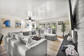 Welcome to this charming ranch-style family home in La Mesa, where everything is conveniently located on the same floor. With four bedrooms, including two with king-size beds and en-suite bathrooms, this home offers comfort and accessibility for all family members. Enjoy the spacious living room designed to accommodate up to 16 people, and take advantage of the driveway parking for two cars and additional street parking. The living area is perfect for relaxation, featuring an 80" HD smart TV and a supersize couch, along with a PS4 game console for family fun. The fully equipped kitchen is ideal for culinary enthusiasts, complete with a gas stove, oven, blender, toaster, and all essential supplies. Modern appliances such as a coffee machine, microwave, and fridge make dining in a pleasure. Pets are welcome in this home. Driveway parking is available for two cars, with extra street parking also provided. Situated just 3 minutes from large shopping centers and the best local restaurants, this home is in a prime area of La Mesa. Use Google Maps with "Randlett Dr, La Mesa, CA 91942" for accurate distances to specific locations. The home is accessible throughout, with all bedrooms and bathrooms on the ground floor, although there are five steps to enter the home. Self-check-in is available via lockbox or keypad, with instructions sent at noon on your check-in day. Please be mindful of noise levels to avoid neighbor complaints, as excessive noise may result in a $1000 penalty. Unauthorized guests or pets will incur a $100 per night penalty. Late checkout without prior approval will be fined twice the nightly rate. Please dispose of trash in provided bins, report any damages immediately, and lock all windows and doors when leaving. No illegal activities or food in bedrooms are allowed, and makeup should be wiped off before sleeping. Toilets should not be clogged with trash or toilet paper, as plumbing issues can result in a bill of $300-$500. Visitors are allowed with prior notice and will be counted as half guests in the reservation. No DJ is allowed, with a $1000 penalty for violations. The HOA has fines for violations, especially regarding parking, noise, and activities. A private workspace is available, equipped with super-fast 500 Gbps Wi-Fi, making it easy to host online meetings or share large files with clients or colleagues. [SI]