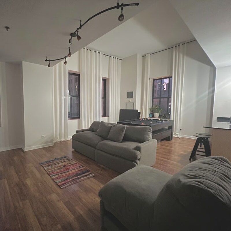 Property Id: 2181754 Welcome to your upscale urban escape in the heart of downtown Chicago! This stylish one-bedroom penthouse blends luxury, comfort, and unbeatable location. Perched on the top floor, enjoy stunning west-facing city views from your modern high-rise retreat. Relax in a cozy living area with sleek decor, dim lighting, and a flat-screen TV. The fully equipped kitchen includes all essentials for easy dining. The elegant bedroom features a king-size memory foam bed—perfect for restful nights. A chic bathroom offers a spacious vanity and a shower/tub combo for a refreshing start or end to your day. Enjoy in-unit laundry, high-speed Wi-Fi, and a convertible 7ft billiard/dining table for games or casual meals. Steps from Chicago's best restaurants, shops, and attractions, this home is ideal for business travelers, couples, or solo visitors. Experience the city's vibrant energy with all the comforts of home. Book your unforgettable stay today!