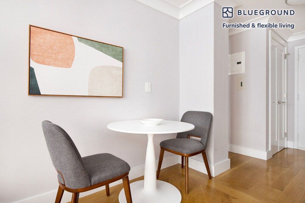 Show up and start living from day one in New York with this sophisticated one bedroom Blueground apartment. You’ll love coming home to this thoughtfully furnished, beautifully designed, and fully equipped Manhattan Valley home. (ID #NYC2199) The advertised rate of $4,690/month is the lowest available price, based on a 12 month(s) stay with a move-in date of May 1, 2026. Rates vary depending on the duration of stay, season, and other parameters. For exact pricing and additional pricing components, please visit our website and enter your desired move-in and move-out dates. The rate is applicable when billed upfront; it can be higher if billed in multiple payments. Brokers are welcome to reach out. Were you looking for an unfurnished lease? Try Blueground instead and upgrade from unfurnished to furnished living: - Furnished at rates comparable to unfurnished - No setup or furniture costs - save thousands - Move-in ready - save time, just bring your suitcase Designed with you in mind Gorgeous furniture, fully equipped kitchen, smart TV, and a premium wireless speaker are just a few of the amenities you’ll find inside this one bedroom apartment. Ideally located in New York, you’ll find a lot to love outside as well. When you’re ready to relax, you’ll be happy to discover every Blueground bedroom comes with superior quality mattresses, fully stocked linens, and cozy towels. We handle everything so you can simply show up and start living. This apartment also offers in-apartment laundry. Sleeping arrangements King Bed, 70.8in/180cm Amenities Building amenities unique to this one bedroom apartment include an on-site: - Doorman - Dryer - Elevator - Washing machine - Pets allowed Arrival and ongoing support The entire apartment is yours to enjoy! Throughout your stay, you’ll have access to our Client Experience team through the Blueground App. You can schedule additional cleanings, submit maintenance requests, and view our neighborhood recommendations with just a few taps. We’ll share all details upon confirmation of your stay. Other things to note This Blueground apartment has flexible lease options, allowing you to book it for one month, a year, or more. Pets are welcome, though weight limits and breed restrictions apply and may incur fees. Brokes CYOF. We take great pride in ensuring every photo displayed is shot in our own units with our actual furnishings. That said, we regularly refresh our decor and furniture arrangement, which may differ from what’s pictured. [SI]