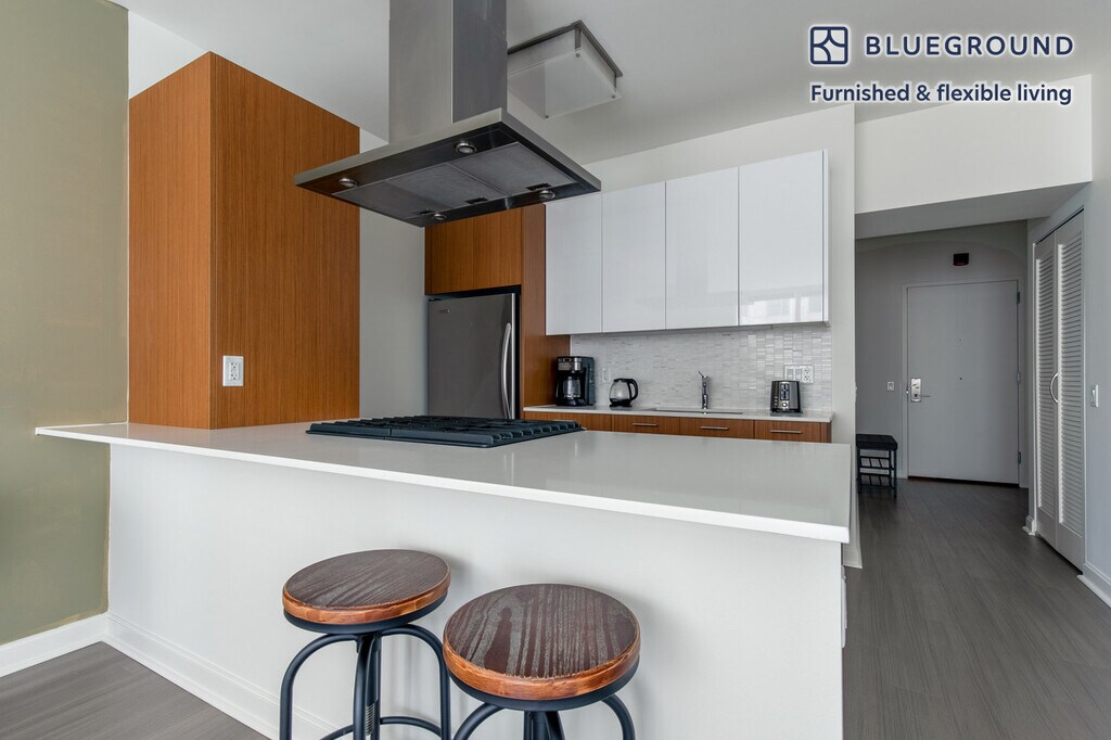 Ofrecemos precios personalizados por cualquier duración. Las tarifas pueden variar según las fechas exactas de mudanza. La tarifa para esta casa comienza en $2,220* / mes. Visita nuestro sitio web e ingresa tus fechas de estadía para ver los precios actualizados para tu reserva específica. *El precio cotizado es: (1) según la mudanza en el primer día en que el apartamento está disponible, (2) aplica solo si se factura por adelantado, puede ser más alto si se factura en múltiples pagos, (3) exclusivo de cualquier impuesto o servicio público. Asista y comience a vivir desde el primer día en Chicago con este acogedor apartamento Blueground de un dormitorio. Le encantará regresar a su hogar en Streeterville, una casa cuidadosamente amueblada, bellamente diseñada y completamente equipada, con una magnífica vista a la ciudad desde una de las plantas más altas del hotel. (ID #CHI1022) Diseñado pensando en usted Magnífico mobiliario, cocina totalmente equipada, televisor inteligente y altavoz inalámbrico premium son solo algunas de las comodidades que encontrará dentro de este apartamento de un dormitorio. Con una ubicación ideal en Chicago, también encontrará mucho que amar al aire libre. Cuando esté listo para relajarse, estará encantado de descubrir que cada dormitorio Blueground cuenta con colchones de calidad superior, sábanas de lujo y toallas acogedoras. Nosotros nos encargamos de todo para que usted pueda simplemente presentarse y comenzar a vivir. Este apartamento también ofrece lavandería en el apartamento. Servicios para dormir con cama Queen de 160 cm Los servicios del edificio exclusivos de este dormitorio incluyen: - Área de barbacoa - Portero - Secador - Ascensor - Gimnasio - Piscina - Lavadora - Salón - Llegada a la biblioteca y asistencia continua ¡Todo el apartamento es suyo! Un miembro del equipo de Blueground te dará la bienvenida personalmente o te dará instrucciones de auto check-in. Durante su estancia, tendrá acceso a nuestro equipo de experiencia del cliente a través de la aplicación Blueground. Puedes programar limpiezas adicionales, enviar solicitudes de mantenimiento y ver las recomendaciones de nuestro vecindario con solo unos pocos toques. Compartiremos todos los detalles tras la confirmación de su estancia. Con una ubicación ideal Este alquiler amueblado está ubicado en Streeterville, a solo 5 minutos a pie de The Loop. Streeterville, uno de los vecindarios de más rápido desarrollo en Chicago, se extiende hasta el lago Michigan y atrae a una mezcla de jóvenes profesionales, estudiantes y turistas. Existen numerosas amenidades y actividades para cada estilo de vida. Desde las actividades de Navy Pier hasta las compras de lujo en Michigan Avenue, es una comunidad que se puede caminar con fácil acceso al entretenimiento. Otras cosas que hay que tener en cuenta Las amenidades del edificio pueden tener un costo adicional. Este apartamento de Blueground tiene opciones de arrendamiento flexibles, lo que te permite reservarlo por un mes, un año o más. Nos enorgullecemos de asegurarnos de que cada foto que se muestre se tome en nuestros propios apartamentos con nuestro mobiliario real. Dicho esto, actualizamos regularmente nuestra decoración y disposición de muebles, que pueden diferir de lo que se muestra en la imagen.