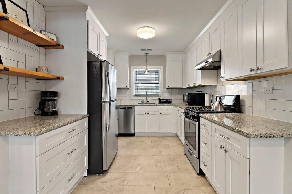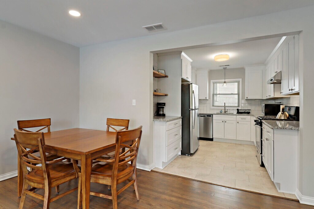 Property Id: 2409240 Welcome to this beautifully updated and fully furnished 2-bedroom, 1-bath home located in Waukegan, just minutes from Vista Medical Center East, Lake Michigan, and downtown Waukegan, with easy access to major highways and nearby North Shore communities. Perfect for traveling professionals, this home offers both comfort and convenience in a well-connected location. Each bedroom features a king-sized bed, comfortably accommodating up to four guests. The bright, open-concept living and dining area provides a relaxing space to unwind, complete with comfortable seating, a flat-screen TV, and a dining table ideal for meals or remote work. The modern kitchen is fully equipped with stainless steel appliances, granite countertops, and all the essentials needed for home cooking. The updated bathroom includes sleek finishes and a granite vanity, while hardwood floors throughout the home create a clean and inviting atmosphere. Large windows bring in plenty of natural light, enhancing the warmth of the space. Additional amenities include an in-unit washer and dryer, ample storage, and a move-in-ready setup designed for both short- and long-term stays. Enjoy close proximity to local hospitals, Metra train access, restaurants, parks, and the Waukegan lakefront, making this an ideal home base for professionals on assignment. Victory Park is just a short walk away, and the home is conveniently located about 15 minutes from Naval Station Great Lakes and AbbVie.