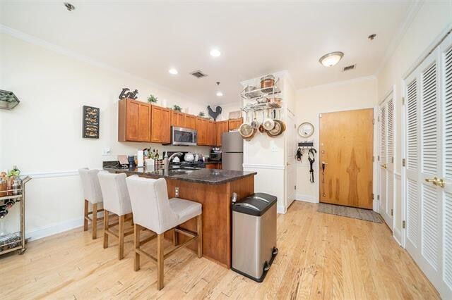 Private patio that will make the neighbors jealous. Quiet, courtyard facing oversized one bedroom apartment in desirable Prospect Hill building -- Open layout, granite counters, huge bathroom with dual sinks. Hardwood floors throughout. Laundry in unit and 1 parking spot included. Gym in building. Located in the heart of it all. Light Rail & NYC bus, ShopRite, the Monroe Arts Center and Hoboken's newest and largest park. Pet friendly.