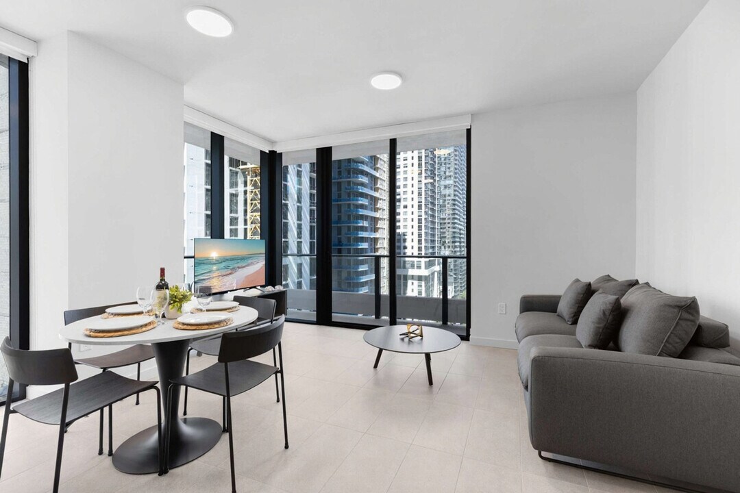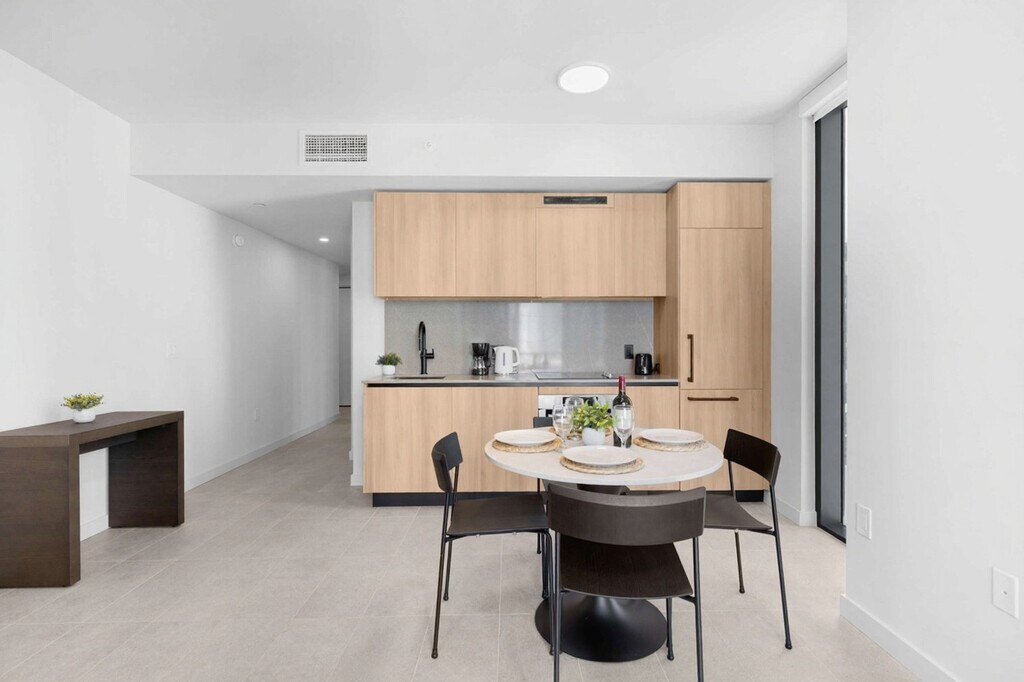 The advertised rate of $3,391/month is the lowest available price, based on a 30 day(s) stay with a move-in date of August 31, 2026. Rates vary depending on the duration of stay, season, and other parameters. For exact pricing and additional pricing components, please visit our website and enter your desired move-in and move-out dates. The rate is applicable when billed upfront; it can be higher if billed in multiple payments. Feel at home in this bright 1-bedroom apartment at 501 Northeast 1st Avenue in Downtown Miami, featuring floor-to-ceiling windows and a private balcony. This curated apartment features designer furnishings, a sleek Italian kitchen with premium appliances, and an in-unit washer and dryer. The kitchen is fully equipped with custom Italian cabinetry and counters, an integrated paneled refrigerator/freezer, a speed oven, a dishwasher, a coffee maker and kettle, cookware and kitchen essentials, silverware, dishes and wine glasses, a dining table for shared meals, and matte black Kohler fixtures. Relax in the open-concept living area with finished flooring and custom window treatments. The bathroom features custom Italian vanities, matte black Kohler plumbing fixtures, and contemporary counters and cabinetry. Valet service is conveniently provided. Self-parking is managed by a third-party company, Metropolis, and requires a separate payment directly with them. Parking rates are $15 for 1 hour, $20 for 2 hours, $30 for 3 hours, $40 for 10 hours, and $50 for 24 hours, and all rates are subject to taxes and additional fees. Located in the heart of Downtown Miami at 501 NE 1st Ave, you're minutes away from culture, nightlife, dining, and waterfront views. Attractions and highlights include Bayside Marketplace, Kaseya Center, Bayfront Park, Brickell City Centre, Wynwood Arts District, Miami Design District, South Beach, and Miami International Airport. Please do not place cardboard in the trash chute. Flatten boxes and take them to the loading dock. Parking enforcement is active 24/7. [SI]