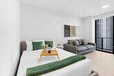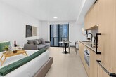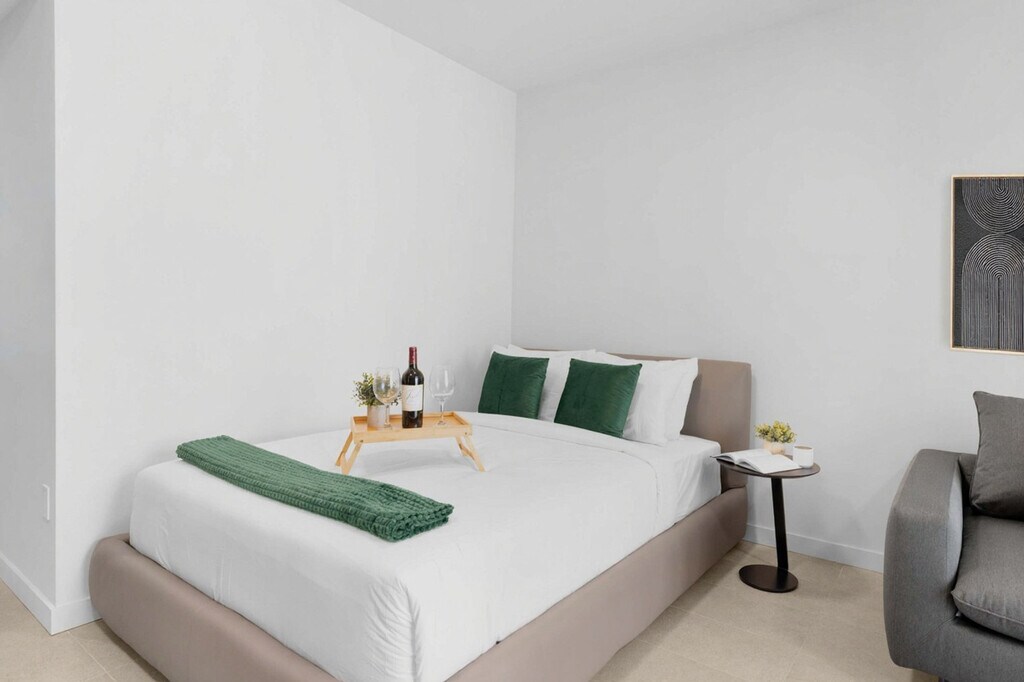 The advertised rate of $3,330/month is the lowest available price, based on a 30 day(s) stay with a move-in date of August 30, 2026. Rates vary depending on the duration of stay, season, and other parameters. For exact pricing and additional pricing components, please visit our website and enter your desired move-in and move-out dates. The rate is applicable when billed upfront; it can be higher if billed in multiple payments. Feel at home in this designer studio at 501 NE 1st Ave in Downtown Miami, featuring floor-to-ceiling windows and a private balcony. Expertly furnished by Resource Furniture, this modern retreat blends European style with smart, space-saving design. The open-concept layout features sleek finishes, custom treatments, finished flooring, a pull-out sofa bed, a sleek Italian kitchen with custom cabinetry and counters, an integrated paneled refrigerator/freezer, a speed oven, a dishwasher, a coffee maker and kettle, cookware and kitchen essentials, silverware, dishes and wine glasses, a dining table, matte black Kohler fixtures, and an in-unit washer and dryer. The bathroom features custom Italian vanity and counters, matte black Kohler plumbing fixtures, contemporary cabinetry, and finished flooring. Valet service is conveniently provided. Self-parking is managed by a third-party company, Metropolis, and requires a separate payment directly with them. Parking rates are $15 for 1 hour, $20 for 2 hours, $30 for 3 hours, $40 for 10 hours, and $50 for 24 hours. All rates are subject to taxes and additional fees. Located in the heart of Downtown Miami at 501 First – 501 NE 1st Ave, you’re minutes away from culture, nightlife, dining, and waterfront views. Bayside Marketplace, Kaseya Center, and Bayfront Park are all within a short distance. This centrally located apartment is also close to Brickell City Centre, Wynwood Arts District, Miami Design District, and South Beach. Public transportation is easily accessible, with the College/Bayside Metromover Station and Government Center Metrorail Station nearby. Uber and Lyft are readily available, and Miami International Airport is a short drive away. Parking enforcement is active 24/7. Please do not place cardboard in the trash chute. Flatten boxes and take them to the loading dock. [SI]