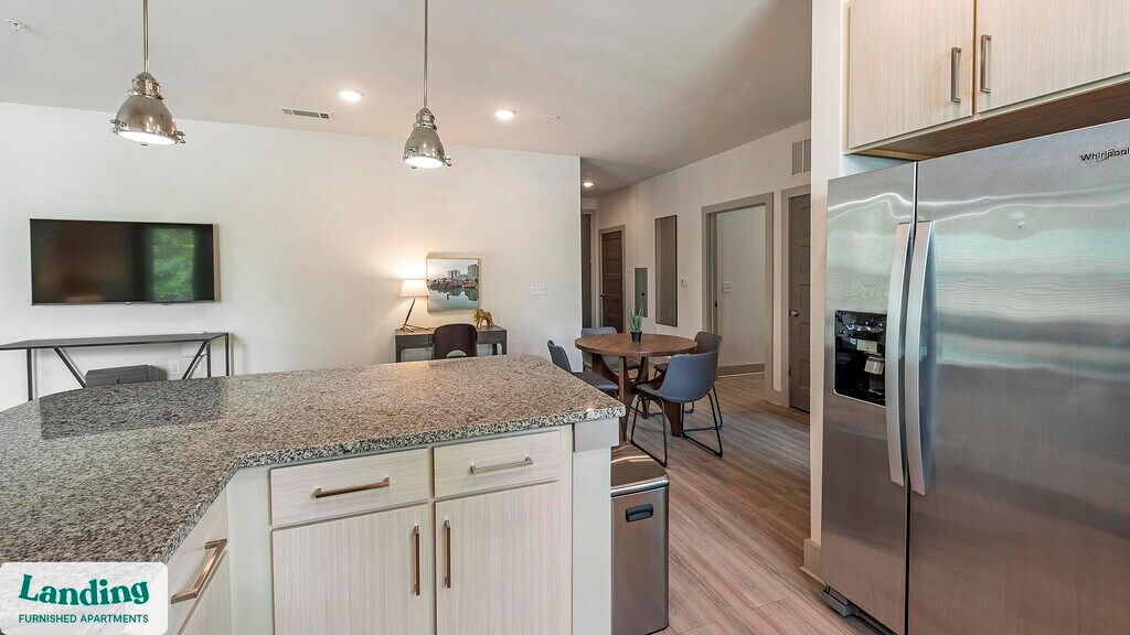Landing offers flexible lease terms from weeks to months. Please always visit our website or contact us for the latest pricing & availability. Stay longer, save more: 6-Month Minimum base rent: starts at $2175/mo 12-Month Minimum base rent: starts at $1821/mo Landing offers flexible leases across a network of over 35,000 fully-furnished apartments throughout 375+ cities so you can rent on your terms, practically anywhere, and avoid the hassle of paying deposits or application fees. Visit to learn about all the benefits of a Landing membership, see our competitive up-to-date pricing, explore available apartments, take virtual tours, and make reservations online without jumping through traditional rental hoops. Landing's apartments at 8 Metro Station are designed for comfortable, easy living, with the ability to stay as long as you like. Experience living with Landing Every apartment is outfitted with all the modern essentials including: custom-designed furnishings, a fully-equipped kitchen with deluxe stainless steel appliances, a gourmet coffee maker, premium linens, Smart TVs, and incredibly fast, reliable internet for working from home. When you live with Landing, you'll enjoy a hassle-free experience with the added benefit of 24/7 access to our dedicated member experience team. Some of the nitty-gritty: a background check and proof of income are required; we're completely smoke-free; bundled utility packages and pricing vary based on length of stay; pet-friendly options available; listed price reflects a 12-month minimum stay.
