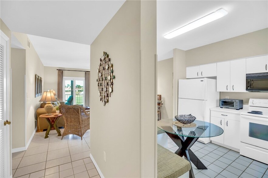 Welcome to the beautiful community of Grand Harbor which is an Audubon certified community with tree lined walkways and waterways filled with native birds. This 2nd floor 1/1.5 condo is the perfect retreat for your winter getaway or primary residence. Gorgeous views of the 18th fairway and gentle swaying palm trees outside the covered screened balcony are perfect for morning coffee and cool afternoon relaxation. Located steps from the elevator and a short stroll to the community resort style pool. Waterlines have been repiped, new A/C/ Heat and newer washer/ dryer and dishwasher.