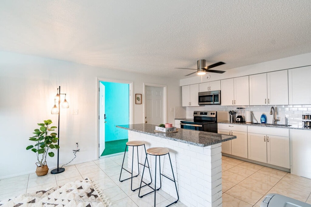 Experience the ultimate coastal getaway at this fully furnished 2-bedroom, 2-bath condo in Cape Canaveral. Just steps away from the beach, this updated retreat offers a refreshing pool and all the essentials for a comfortable stay. Whether you're catching a cruise, witnessing a rocket launch, or exploring the area's attractions, this condo's prime location and proximity to Kennedy Space Center make it the perfect choice for your next vacation. Indulge in the epitome of comfort and style at this beachside haven. This spacious 2-bedroom, 2-bath condo is fully furnished, offering a seamless blend of modern amenities and coastal charm. The living area is warm and inviting, with plush seating and a flat-screen TV providing the perfect entertainment after a day of exploring. Whip up delicious meals in the fully stocked kitchen, complete with all the essentials you need. The two bedrooms offer the ultimate sanctuary, each featuring cozy beds and ample storage space. And when you're in the mood for a swim, head to the sparkling pool just steps away. With its prime location and stylish interiors, this condo is the ideal choice for an unforgettable beach getaway. While we love all furry friends, only dogs are allowed at this property, with a fee of $100 per pet per stay. This condo is ideally located on the Space Coast in Cape Canaveral. You'll be steps away from the beach and front-row seats to rocket launches. Don't miss a visit to the Kennedy Space Center, only 20 minutes away. The condo is conveniently located only 2 miles away from Port Canaveral, making it the perfect spot to stay before or after your cruise. Plus, with easy access to Orlando, you can enjoy theme parks and attractions. The neighborhood is safe and quiet, with plenty of dining options nearby. Mailbox access is not available for guests. Plenty of space for on-site parking. Very close to SR528 and SR520 intersections that will each get you anywhere you want to be quickly. Uber and Lyft are prevalent in the area. To ensure a comfortable start to your stay, an initial stock of essentials is provided, including paper towels, toilet paper, tissues, coffee pods, creamer, sugar, light cleaning supplies, garbage bags, sponges, dish soap, and dishwasher tabs. If you need additional supplies during your stay, please plan to replenish them as needed. A refundable security deposit or the purchase of a damage waiver is required for all reservations. [SI]