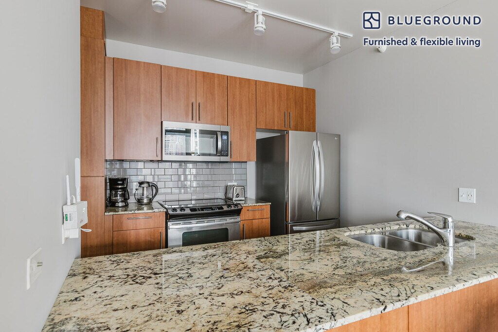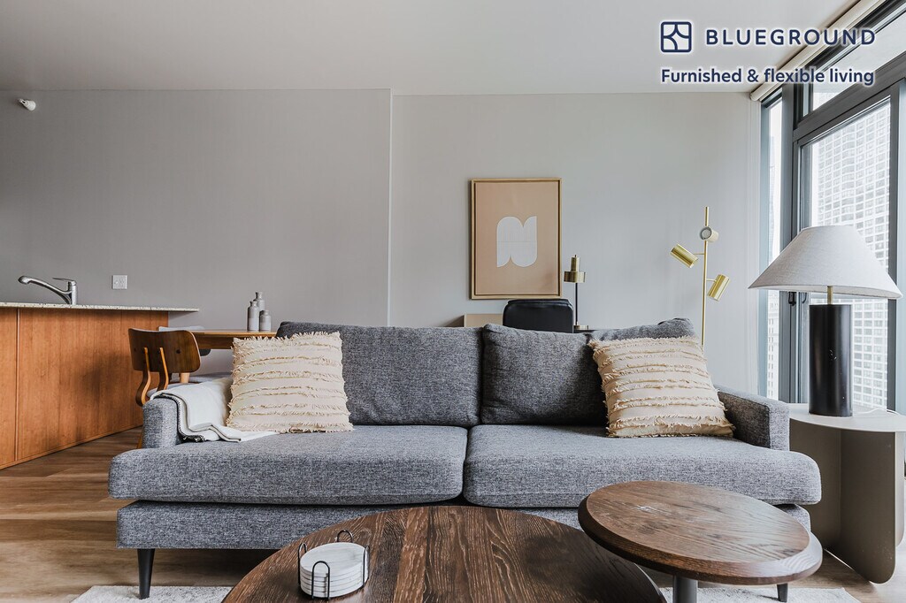 Show up and start living from day one in Chicago with this cozy one bedroom Blueground apartment. You’ll love coming home to this thoughtfully furnished, beautifully designed, and fully equipped Near North Side home with stunning balcony views over the city. (ID #CHI1142) The advertised rate of $3,040/month is the lowest available price, based on a 11 month(s) and 29 day(s) stay with a move-in date of April 13, 2026. Rates vary depending on the duration of stay, season, and other parameters. For exact pricing and additional pricing components, please visit our website and enter your desired move-in and move-out dates. The rate is applicable when billed upfront; it can be higher if billed in multiple payments. Brokers are welcome to reach out. Were you looking for an unfurnished lease? Try Blueground instead and upgrade from unfurnished to furnished living: - Furnished at rates comparable to unfurnished - No setup or furniture costs - save thousands - Move-in ready - save time, just bring your suitcase Designed with you in mind As with any Blueground apartment, you’ll find a thoughtfully designed space complete with beautiful furniture and a fully equipped kitchen in this one bedroom property. And, thanks to our superior quality mattresses, fully stocked linens, and towels, you can relax knowing you’ll always feel comfortably at home. When you’re ready for some fun, you can take in the Chicago vibes or bring the entertainment to you with the premium wireless speaker or smart TV. This apartment also offers in-apartment laundry. Sleeping arrangements King Bed, 70.8in/180cm Amenities Building amenities unique to this one bedroom apartment include an on-site: - Doorman - Dryer - Elevator - Swimming pool - Washing machine - Parking - Pets allowed Arrival and ongoing support The entire apartment is yours to enjoy! Throughout your stay, you’ll have access to our Client Experience team through the Blueground App. You can schedule additional cleanings, submit maintenance requests, and view our neighborhood recommendations with just a few taps. We’ll share all details upon confirmation of your stay. Ideally Located This furnished apartment is located in Chicago's Near North Side neighborhood. Part of the storied Miracle Mile, this thriving neighborhood set on the shore of Lake Michigan is home to some of the city's most notable skyscrapers. The Near North Side has a fabulous dining scene, with everything from Chicago-style pizza to casual pubs to five-star restaurants. Neighborhood highlights include the Museum of Contemporary Art and 360 Chicago, a skyscraper with an observation deck. There's also Navy Pier, a lakefront park with casual dining, dinner cruises and carnival rides. The Near North Side is served by the CTA's Brown, Red and Purple Lines, as well as several bus routes. Other things to note Building amenities may have an extra cost. This Blueground apartment has flexible lease options, allowing you to book it for one month, a year, or more. Pets are welcome, though weight limits and breed restrictions apply and may incur fees. Parking is offered based on availability and is subject to a fee. We take great pride in ensuring every photo displayed is shot in our own units with our actual furnishings. That said, we regularly refresh our decor and furniture arrangement, which may differ from what’s pictured. Also note - This apartment is in close proximity to a fire/police station, so you can expect noise from time to time - This apartment's central location means it can be noisy at times [SI]