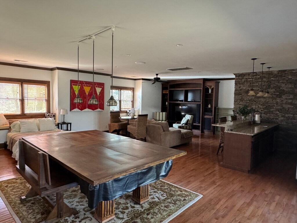 Property Id: 2483799 Guest house in Signal Mountain's historic district. Thirty day rental minimum. Walk to hiking trails, Rainbow Lake and Edward's Point. Mountain biking trails nearby. Fully equipped and private studio with full kitchen, granite countertops, walk-in closet, full size washer/dryer, three TV's and pool table. One climate controlled garage space included and monthly housekeeping service. Utilities included are based on average usage. Easy, temporary rental for someone just checking out the area or even building a house nearby. Non-smoking property. Balcony and patio with grill.
