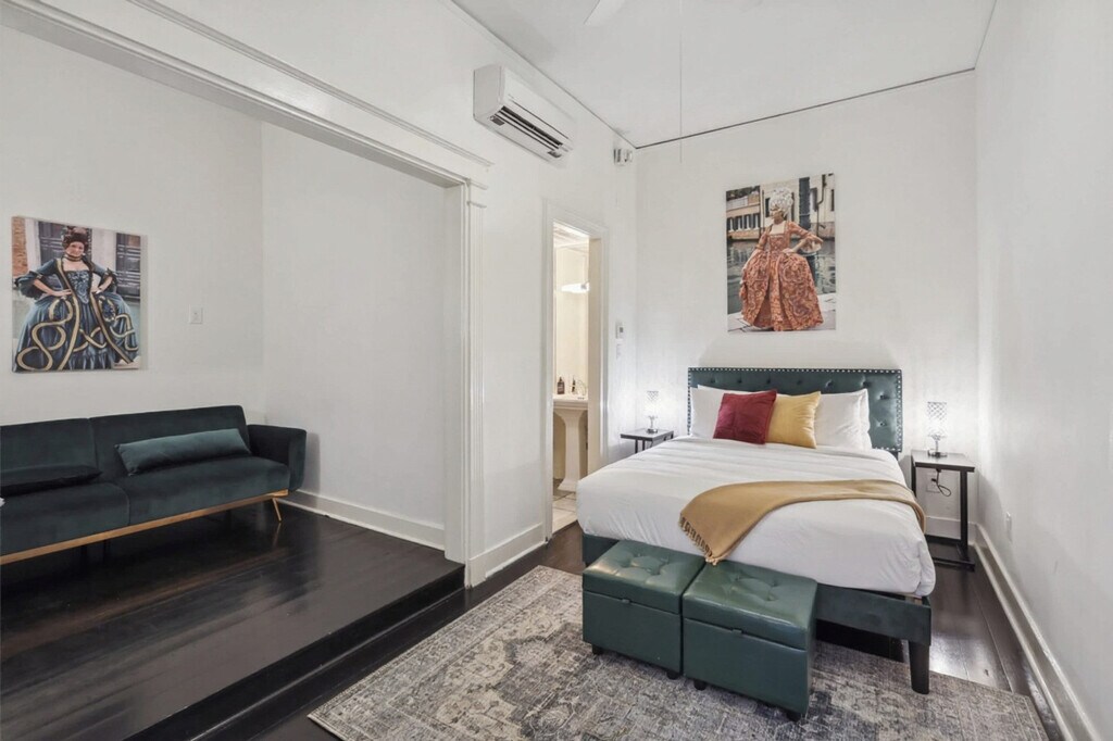 Feel at home in this historic and modern apartment in the heart of New Orleans, located in St. Helene just two blocks from Bourbon Street, offering a serene retreat within the vibrant French Quarter. This listing is for two units that are close together, if not side by side, though they are not connected, each featuring its own living space and bathroom(s). This beautifully preserved building offers a peaceful retreat designed with your comfort in mind. From original architectural details to contemporary finishes, this space reflects the character of the past while providing the conveniences of today. Enjoy a smart TV with streaming apps installed and complimentary coffee. Let the soul of New Orleans surround you in a neighborhood where every block pulses with culture, color, and sound. Just steps from your door, the French Quarter invites you to wander its historic streets, where Creole townhouses, hidden courtyards, and centuries-old landmarks tell the story of the city’s vibrant past. From mouthwatering Cajun and Creole cuisine to the sounds of live jazz drifting from street corners and cozy clubs, every moment here is steeped in authenticity. Nearby attractions include the Audubon Aquarium of the Americas (0.7 miles), Bourbon Street and Canal Street (0.5 miles), the House of Blues (0.4 miles), the Port of New Orleans (1.7 miles), and the Caesars Superdome (1.6 miles). This is a smoke-free environment, and any sign of smoking is a violation of the stay agreement, which may result in immediate termination and recovery fees beginning at $500. Guests must agree to not disturb neighbors at all times during the stay and must observe quiet hours from 9 pm to 8 am each day. There is a $500 penalty for removing smoke detectors and a $200 penalty for lost key fobs. Check-in is at 4 PM and check-out is at 11 AM, with a $75/hr late fee. No outside guests are allowed without permission. One towel is provided per guest per stay. A valid photo ID is required to complete the booking. A pet fee may be charged for guests traveling with an emotional support animal, and the presence of emotional support animals can be declined. To abide by all legal requirements and HOA rules, you will be asked to provide a copy of your official government-issued photo ID, confirm your contact information, and pass through our verification portal. In some instances, you may be asked to complete a criminal background check. No weapons or drugs are allowed; police will be called for violating this rule. Long-term guests (30 days+) will be subject to a background search and credit check. Registration Number: 25-XSTR-20402 [SI]