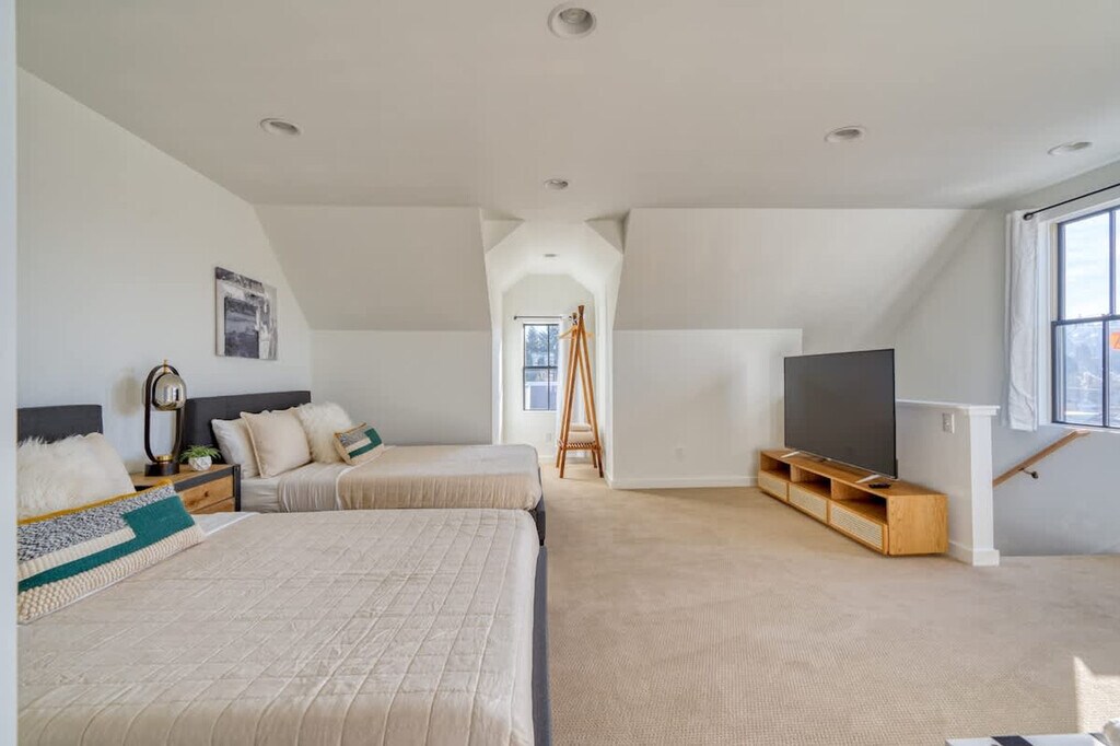 Stay in a luxury, newly built townhome near Mt. Tabor and Portland’s best dining spots. This spacious retreat features 3 bedrooms, 2.5 baths, a stylish loft, and a private deck. Enjoy central A/C, high-speed Wi-Fi, Smart TVs, a fully equipped kitchen, and in-unit laundry. Includes an off-street parking space. Walk to coffee shops, breweries, and scenic parks or hop on nearby transit for quick downtown access. This luxury 4-level home combines modern design with ultimate comfort. The ground floor offers a private entry, garage for gear storage, and a dedicated off-street parking spot, along with laundry facilities with detergent provided. On the second floor, enjoy open-concept living with a plush sofa and large Smart TV, a chef’s kitchen with stainless appliances, quartz counters, and Keurig coffee, a dining area that seats 6, and a half bath with deck access for outdoor relaxation. The third floor features a primary suite with a queen bed and en-suite bath with dual vanities and a walk-in shower, a second queen bedroom, and a full hallway bath. The fourth-floor loft includes two queen beds, a sofa, and a Smart TV, perfect for extra guests or movie nights. Need more space? There are 4 side-by-side homes available to host up to 28 guests across 12 bedrooms. Located in the heart of the charming Rose City Park neighborhood, this vibrant area perfectly captures the eclectic spirit of Portland, offering a delightful mix of residential tranquility and urban convenience. The Rose City Park neighborhood is known for its tree-lined streets, historic homes, and friendly atmosphere. Just a short stroll from your doorstep, you’ll find a variety of local amenities that showcase Portland's unique charm. Enjoy a leisurely walk to nearby cafes, bakeries, and boutique shops that add a personal touch to your daily errands. Food enthusiasts will love the diverse dining options available within walking distance. Whether you're craving farm-to-table cuisine, international flavors, or a classic Portland food cart experience, you'll find it all nearby. The local markets and grocery stores ensure you have everything you need to whip up a meal at home in your fully equipped kitchen. For those who love the outdoors, the neighborhood is surrounded by beautiful parks and green spaces. Rose City Park itself offers a peaceful retreat with walking paths, picnic areas, and playgrounds. A short drive or bike ride will take you to the expansive Laurelhurst Park, a perfect spot for a relaxing afternoon. Transportation is a breeze, with easy access to major bus lines and bike-friendly streets. The neighborhood’s central location means you're just minutes away from downtown Portland, the bustling Alberta Arts District, and other popular attractions. Whether you're here for business or pleasure, you'll appreciate the convenience and accessibility of this prime location. The property has four flights of stairs, which may not suit guests with mobility issues. No parties or events are allowed, and quiet hours are between 22:00 and 8:00. The home is equipped with ultra-fast Wi-Fi and Smart TVs in the living area and loft, making it remote work-friendly. [SI]