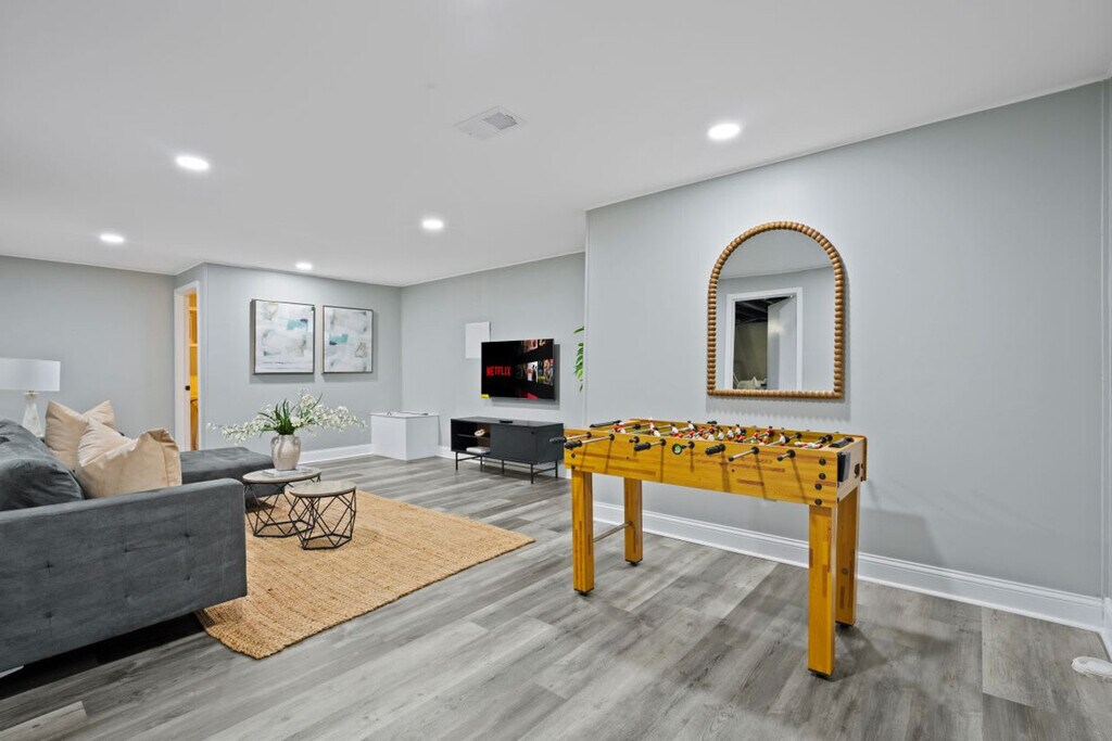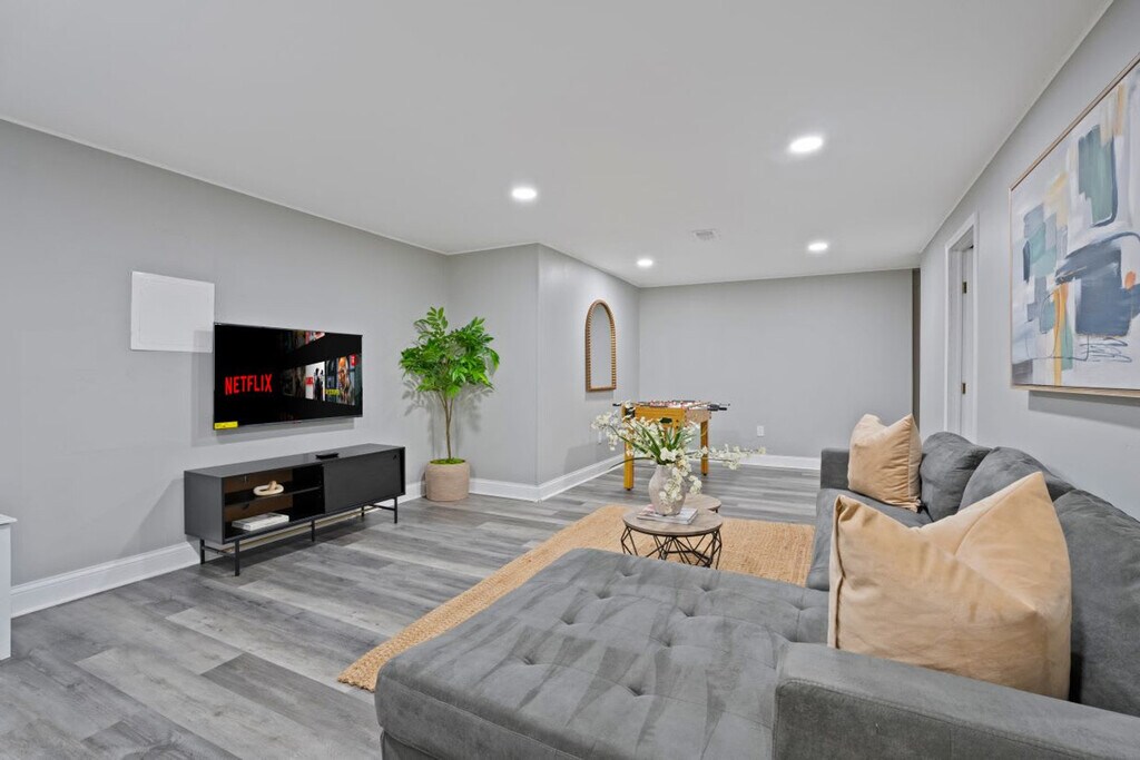 Feel at home in this spacious 4-bedroom, 2-bathroom home designed for group stays, accommodating up to 8 guests. Located near O’Hare Airport, I-90, and the Rosemont entertainment district, this home offers convenience and comfort with a large backyard and off-street parking. Perfect for families or groups, it provides easy access to shopping and dining. This inviting home is ideal for larger groups, offering space and comfort in a prime location. It features 4 spacious bedrooms with a king-size bed in Bedroom #1 and queen-size beds in Bedrooms #2, #3, and #4. The 2 full bathrooms are stocked with essentials, and fresh linens and towels are provided for all guests. The fully equipped kitchen includes cooking essentials, a coffee maker, and kitchen basics. Enjoy high-speed WiFi for remote work or streaming, and a large backyard with outdoor seating for gatherings. A washer and dryer with detergent are also available. Pets are welcome with a $200 pet fee per pet. Off-street parking is available for added convenience. The neighborhood in Des Plaines, IL is a charming and peaceful residential area that offers a wonderful community environment. Characterized by well-maintained homes and tree-lined streets, it exudes a welcoming atmosphere. Residents enjoy convenient access to parks, green spaces, shopping centers, restaurants, and entertainment options. Transportation is easy with quick access to major roads and highways, including Route 14 and Interstate 294, making commuting to downtown Chicago and other areas accessible. Guests must be at least 21 years old to book. There is a strict no-smoking policy inside the home, with a $500 deep cleaning fee for violations. Parties or large gatherings are not allowed, with a $1,000 fine and immediate eviction for violations. Quiet hours are from 11 PM to 7 AM, and noise complaints may result in a $300 fee and termination of the reservation. Tampering with outside cameras will result in a $350 fee and eviction. Unauthorized late checkouts will incur a $100 fee. Fast WiFi is available throughout the home, making it remote work-friendly. A laptop computer is not included. [SI]