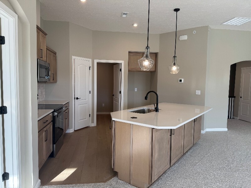 Property Id: 2283658 * End unit for more privacy Prime Location: Beavercreek School District (Fairborn taxes, but Beavercreek schools) Key Features: * Spacious island kitchen, upgraded stainless steel appliances (electric range, over-the-range microwave vented outside, dishwasher, refrigerator), quartz countertops, backsplash, upgraded cabinetry with soft-close hinges and crown molding, and a convenient pantry * Open flow from kitchen to combined family room and dining area, leading out to a covered deck with peaceful pond views * Versatile private study with elegant double doors (easily convertible to a 3rd bedroom) * Primary suite with en suite bathroom featuring a double-bowl vanity, walk-in shower, and three closets (two walk-ins) * Additional bedroom and full hall bath, positioned on opposite sides of the home for enhanced privacy * Attached one-car garage and designated driveway parking. Extra storage area in garage. * Green space next to condo Highlights & Upgrades: * Brand new construction * Expansive quartz kitchen island * Upgraded cabinets with crown molding * Covered deck * Master bath with double vanity and premium finishes * Split-bedroom layout for maximum privacy * Upgraded stainless steel appliances: Electric Range, Over the range microwave (vented to the outside), dishwasher, refrigerator, washer and dryer * Blinds on all windows * LED-lighted ceiling fans * HOA-maintained landscaping and ramps * Pet-friendly (non-aggressive breeds only) Convenient Location: * Just 3 minutes to The Mall at Fairfield Commons, restaurants, hospitals, movie theaters, and major shopping * 10 minutes to Wright-Patterson Air Force Base Additional Details: * Furniture not included * No smoking * Tenant responsible for electric, internet. * Covered in rent price - HOA covers water, snow removal, lawn maintenance, trash