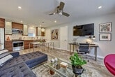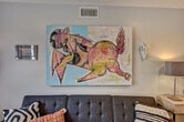Feel at home in this charming mid-century 1-bedroom condo in the heart of Myers Park. This bright, first-floor retreat is surrounded by towering oaks on historic Queens Road. This stylish condo captures the timeless beauty of mid-century design while offering modern amenities. It features designer furnishings, luxe linens, a full kitchen equipped for home cooking, a bathroom with heated marble floors, an in-unit washer and dryer, a streaming-ready smart TV, and original work by Charlotte artist Nico Amortegui. The full kitchen includes a gourmet gas range, convection oven, full-size refrigerator, dishwasher, and all cookware essentials. The open-concept dining area has seating for four. Enjoy ultra-fast Wi-Fi, Hulu + Live TV, a shared patio with a grill and outdoor seating, and a reserved parking spot steps from your door. A workstation with a monitor, keyboard, and mouse is available for $10 per day. A pack ’n Play or highchair is available with 24-hour notice. Dogs are welcome with a fee of $59 per dog, or $120 unregistered. Welcome to Myers Park, one of Charlotte’s most beloved neighborhoods, known for its classic architecture, winding streets, and beautiful oak canopy. Walk to Summit Coffee, Laurel Market, RuRu’s, or Stagioni for local favorites. Explore the nearby Myers Park Mile for boutique shopping and wine bars. This neighborhood was designed by John Nolen in the early 1900s and still reflects his philosophy of walkability, elegance, and green space. Uptown Charlotte is 5–7 minutes by car, Atrium CMC & Novant Hospitals are a 10–12-minute walk, Freedom Park is a 15-minute walk via Greenway, the Light Rail (East/West Blvd Station) is a 10-minute drive, and the airport is 15–20 minutes by car. Uber, Lyft, and bikeshare options are plentiful, though most guests enjoy walking beneath the historic oaks of Myers Park. Quiet hours are from 10 PM to 7 AM. No parties or unregistered guests are allowed. Smoking and vaping are strictly prohibited, and there is a $500 fee for violations. Dogs must be kept off furniture; extra cleaning fees may apply. [SI]