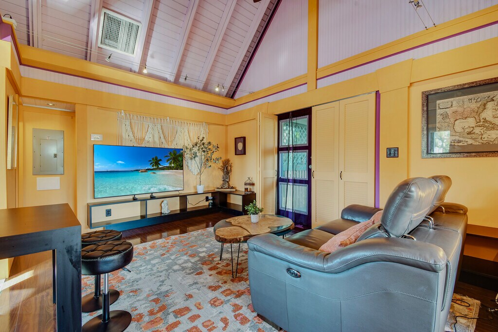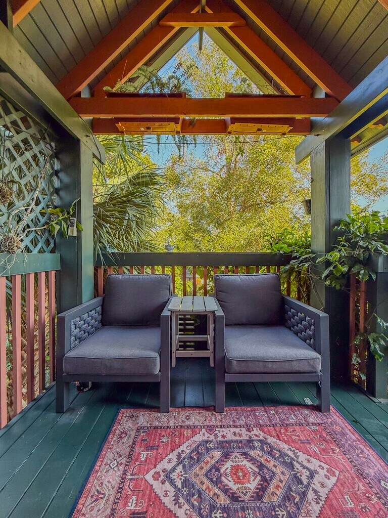 Property Id: 2442504 Will not respond to generic auto messages. Please reach out with details about yourself and what you're looking for. $2400/month for 6+ month lease, Fully furnished with everything you need included! Or seasonal 1 month minimum including high speed internet, Trash, water, electric, landscaping @ $2750/mo. A+ Location! A unique bungalow custom built and tastefully renovated. A 3 min walk to Downtown Gulfport where you can enjoy beach, fishing pier, local shopping, bars and restaurants. A short walk in the other direction takes you to the trails and wildlife scenery of Clam Bayou Nature Preserve. 1 house from the water but NOT IN A FLOOD ZONE! 10 minute drive to Downtown St.Petersburg and 8 minute drive to the top-rated beaches in the U.S! This is the top floor of a Duplex Unit. This property has its own separate large fenced in private yard with many tropical fruit trees. It is a very unique key west style A-frame. Very thoughtfully laid out to include everything needed to have a comfortable stay. Ceilings are 20+' tall vaulted. There is an outdoor private jacuzzi tub and shower surrounded by lush landscaping. Private parking & entrance. Small outdoor deck with water views. 2 smaller walk-in closets, full kitchen, a small office and laundry space. Owner covers all utilities, high speed internet, water, electric, trash services, etc.