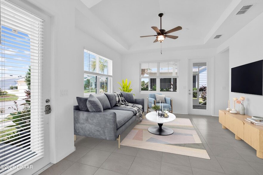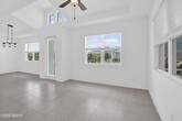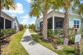 Freshly painted Aloha Conch Cottage for your own decorative flair & personal creative design!! This home is the largest Conch Cottage in Latitude, an award-winning 55+ luxury resort-style gated community with a private motorcoach to its Member-Only Beach Club. The Aloha is the only Conch Cottage with a separate lanai entrance from the living area. This home has a GAS range and dishwasher! Builder upgrades include frameless shower doors, Ceramic tile throughout, vaulted ceilings, glass front and patio doors. Owner added extra electrical outlets in the screened lanai, front entrance & decorative shelf above door! This prime lot faces Landshark Boulevard with two steps up to the front door. So you ''wanna move to Margaritaville?'' Now is your chance! Enjoy daily poolside entertainment and bands in Town Center every Friday and Saturday night! Take a virtual tour and watch the video to see why this home is so spectacular! Move in today! 55+ gated community, age verification required.