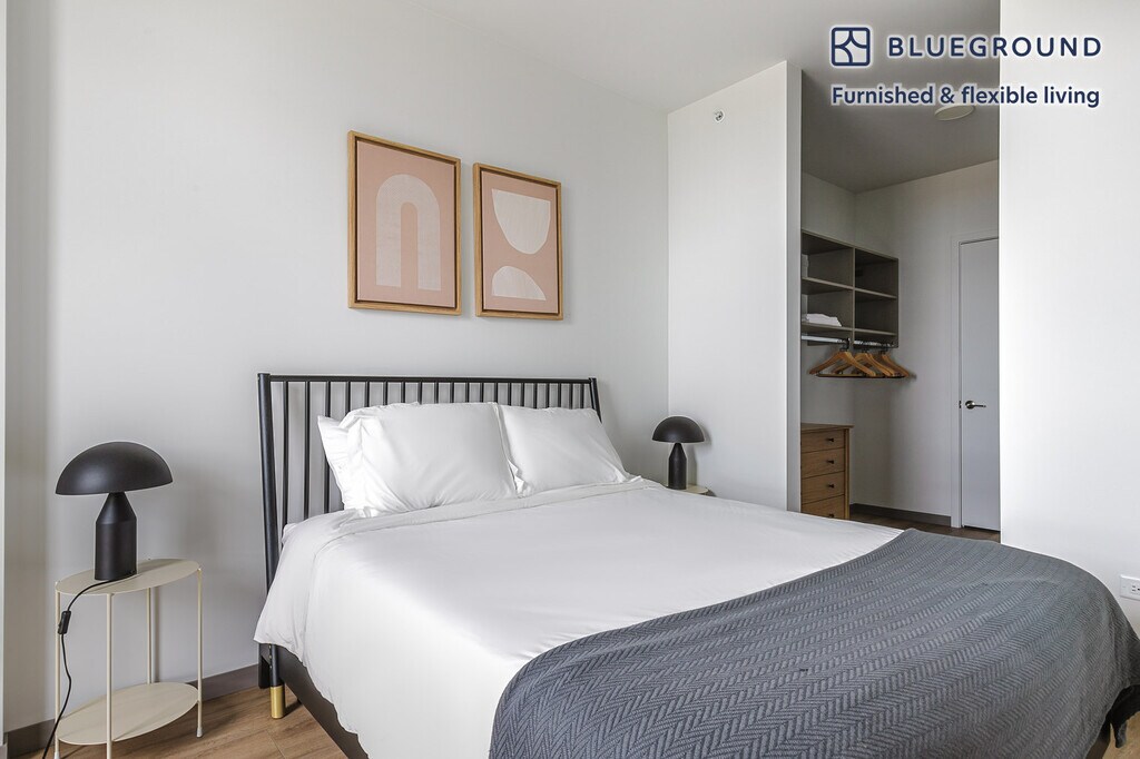 Show up and start living from day one in Chicago with this charming one bedroom Blueground apartment. You’ll love coming home to this thoughtfully furnished, beautifully designed, and fully equipped Tri-Taylor home with stunning views over the city. (ID #CHI1107) The advertised rate of $3,400/month is the lowest available price, based on a 2 month(s) and 1 day(s) stay with a move-in date of November 4, 2028. If you’re looking for a 1-year stay, the rate is $3,880/month. Rates vary depending on the duration of stay, season, and other parameters. For exact pricing and additional pricing components, please visit our website and enter your desired move-in and move-out dates. The rate is applicable when billed upfront; it can be higher if billed in multiple payments. Brokers are welcome to reach out. Were you looking for an unfurnished lease? Try Blueground instead and upgrade from unfurnished to furnished living: - Furnished at rates comparable to unfurnished - No setup or furniture costs - save thousands - Move-in ready - save time, just bring your suitcase Designed with you in mind As with any Blueground apartment, you’ll find a thoughtfully designed space complete with beautiful furniture and a fully equipped kitchen in this one bedroom property. And, thanks to our superior quality mattresses, luxury linens, and towels, you can relax knowing you’ll always feel comfortably at home. When you’re ready for some fun, you can take in the Chicago vibes or bring the entertainment to you with the premium wireless speaker or smart TV. This apartment also offers in-apartment laundry. Sleeping arrangements Queen Bed, 63in/160cm Amenities Building amenities unique to this one bedroom apartment include an on-site: - Doorman - Dryer - Elevator - Swimming pool - Washing machine - Pets allowed Arrival and ongoing support The entire apartment is yours to enjoy! Throughout your stay, you’ll have access to our Client Experience team through the Blueground App. You can schedule additional cleanings, submit maintenance requests, and view our neighborhood recommendations with just a few taps. We’ll share all details upon confirmation of your stay. Other things to note Building amenities may have an extra cost. This Blueground apartment has flexible lease options, allowing you to book it for one month, a year, or more. Pets are welcome, though weight limits and breed restrictions apply and may incur fees. We take great pride in ensuring every photo displayed is shot in our own units with our actual furnishings. That said, we regularly refresh our decor and furniture arrangement, which may differ from what’s pictured. Also note - This apartment's central location means it can be noisy at times