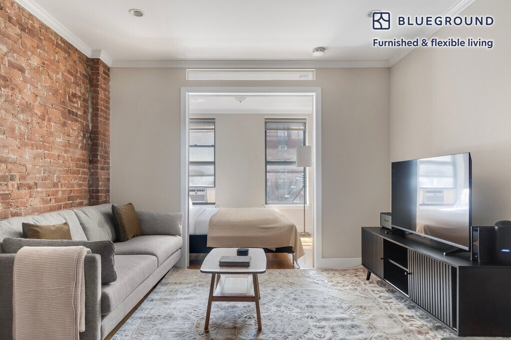 Feel at home wherever you choose to live with Blueground. You’ll love this lovely Hell's Kitchen furnished two bedroom apartment with its modern decor, fully equipped kitchen, and exquisite living room. Ideally located, you’re close to all the best that New York has to offer! (ID #NYC1989) The advertised rate of $5,650/month is the lowest available price, based on a 11 month(s) and 29 day(s) stay with a move-in date of September 2, 2026. Rates vary depending on the duration of stay, season, and other parameters. For exact pricing and additional pricing components, please visit our website and enter your desired move-in and move-out dates. The rate is applicable when billed upfront; it can be higher if billed in multiple payments. Brokers are welcome to reach out. Were you looking for an unfurnished lease? Try Blueground instead and upgrade from unfurnished to furnished living: - Furnished at rates comparable to unfurnished - No setup or furniture costs - save thousands - Move-in ready - save time, just bring your suitcase Designed with you in mind Gorgeous furniture, fully equipped kitchen, smart TV, and a premium wireless speaker are just a few of the amenities you’ll find inside this two bedroom apartment. Ideally located in New York, you’ll find a lot to love outside as well. When you’re ready to relax, you’ll be happy to discover every Blueground bedroom comes with superior quality mattresses, fully stocked linens, and cozy towels. We handle everything so you can simply show up and start living. This apartment also offers in-apartment laundry. Sleeping arrangements Queen Bed, 63in/160cm Queen Bed, 63in/160cm Amenities Building amenities unique to this two bedroom apartment include an on-site: - Dryer - Washing machine Arrival and ongoing support The entire apartment is yours to enjoy! Throughout your stay, you’ll have access to our Client Experience team through the Blueground App. You can schedule additional cleanings, submit maintenance requests, and view our neighborhood recommendations with just a few taps. We’ll share all details upon confirmation of your stay. Other things to note This Blueground apartment has flexible lease options, allowing you to book it for one month, a year, or more. Please keep in mind that this is a walk up building. Brokes CYOF. We take great pride in ensuring every photo displayed is shot in our own units with our actual furnishings. That said, we regularly refresh our decor and furniture arrangement, which may differ from what’s pictured. [SI]