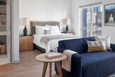 Located in the heart of Downtown Nashville, this spacious studio apartment offers everything you need for an unforgettable getaway. Enjoy stunning views of downtown Nashville and the convenience of being close to major business centers and Music Row. With a fully equipped kitchen and an in-unit washer/dryer, you'll feel at home in this vibrant area. Experience the charm of Nashville from this studio apartment, perfect for those looking to be at the heart of the action. The apartment features one queen bed suitable for two guests, a flat-screen TV with streaming services, complimentary WiFi, central AC and heat, roller shade window coverings, a walk-in closet, and ceiling fans with LED lighting in the bedroom. On-site parking is available for an additional fee of $35 per night. Up to two pets are welcome with a non-refundable $75 pet fee per pet. Additional housekeeping services are available upon request. Immerse yourself in the excitement of Downtown Nashville with quick access to the Country Music Hall of Fame, the Ryman Auditorium, and Broadway’s lively entertainment scene. Explore the vibrant downtown streets, scenic parks, renowned music venues, eclectic dining, and historic landmarks. Nearby bus stops, WeGo Public Transit Train, bike rentals, and ridesharing services make getting around easy. Nashville International Airport is just a 15-minute drive away. Smoking and vaping are strictly prohibited anywhere in the building to maintain a clean and healthy environment. Parties are not allowed, and only registered guests are permitted on the property. A $150 credit card authorization is required at check-in and will be released at checkout. Check-in starts at 4:00 pm and check-out is by 11:00 am. Early check-in may be available for a fee of up to $100 plus tax based on availability at the time of arrival. The property offers premium amenities including dedicated work spaces designed to boost productivity and focus, WiFi in common areas, and an entertainment lounge for unwinding and socializing. [SI]