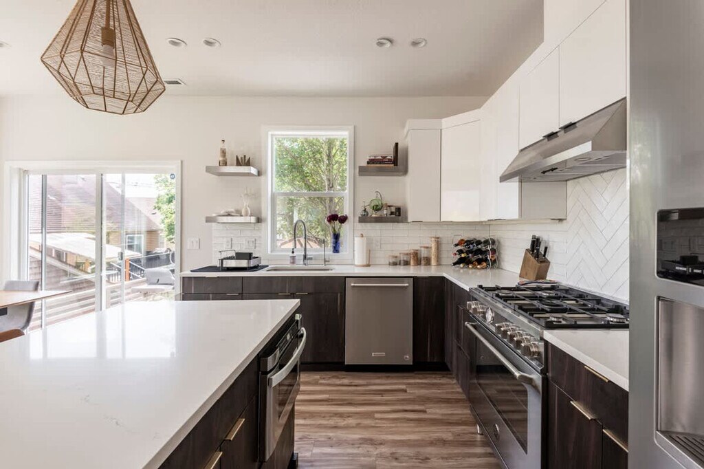 Welcome to Alberta Retreat, your upscale spacious home in the walkable Alberta Arts District in Northeast Portland. This inviting residence features high ceilings, four bedrooms, and a large, fully stocked kitchen, making it ideal for those who want to feel at home during their longer stay in Portland. Enjoy the convenience of a private driveway for two cars and a large patio perfect for BBQs. This home boasts a fully equipped chef's kitchen, complete with a gas stove, oven, microwave, toaster, air fryer, full-sized fridge and freezer, coffee pot, espresso machine, and electric tea kettle. The kitchen is complemented by a complete set of silverware, dishes, and cooking utensils, as well as a fully stocked spice rack. The spacious living area includes a smart TV with a 65-inch screen, and there are two dedicated workspaces for those working remotely. A full-sized private washer and dryer are also available for your convenience. This pet-friendly home offers complimentary gym equipment and a private driveway for two cars. Please note that there is a fee of $500 for air remediation if evidence of smoking is found inside the home. Located just half a block from the vibrant Alberta Street, this home offers easy access to some of Portland’s best coffee shops, restaurants, craft breweries, and unique food carts. A 10-minute drive will take you to downtown Portland and the Pearl District, while local hiking trails like Forest Park and Mount Tabor are just 15 minutes away. The property is also conveniently located one block from a main bus line, making it easy to explore the city without a car. This is a non-smoking home, and any evidence of smoking inside will result in a $500 fee for air remediation. Quiet hours are from 9:00 PM to 8:00 AM, and no parties or unregistered guests are allowed. Unauthorized late checkouts that delay the cleaning service will incur a $100 fee. Entry is keyless with a personal smart lock code provided after booking. Includes two dedicated workspaces equipped with fast, seamless Wi-Fi and a printer, making it ideal for remote work. [SI]
