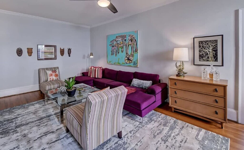 Feel at home in this large 1-bedroom condo located on the second floor of a historic 1920s building in the desirable and walkable Elizabeth neighborhood. The condo features large double-hung windows that let in an abundance of light. The condo features a fully equipped kitchen with stainless appliances, pots, pans, and utensils. The adjacent dining room comfortably seats four. The spacious living room features a large, upholstered sofa and a flatscreen television with streaming and Live TV. The main bedroom has a king-size bed with a television and a generous closet, which includes plenty of clothes hangers, an iron, and an ironing board. The bathroom has modern bath fixtures and tiled walls and floor, along with plush towels. A starter supply of bath products and detergents are included. On-site parking is available. This condo is dog-friendly with a pet fee of $59 per dog (two maximum). Situated in historic Elizabeth, this residence is conveniently located a few steps from Hawthorne Avenue, the heart of Charlotte’s health care district. Plaza Midwood and Uptown are a short ride away on the streetcar. Within a half mile walking distance are more than 40 locally owned restaurants, and Independence Park, Charlotte’s oldest park, is just down the street. The Charlotte greenway is less than a half mile away. Dogs are never allowed on the furniture or bed. If there is hair on the furniture, excess hair in the home, stains, damage, or waste found in the yard or home, an additional fee will be charged. Smoking and vaping are not allowed inside/outside the home or building. To maintain a peaceful environment, parties, additional guests, events, or large gatherings are not permitted. Quiet hours are between 10 pm and 7 am. Guests must be at least 21 years old to make a reservation. Air conditioning must remain between 72 and 75 degrees in the summer and 68-72 in the winter and on AUTO to help ensure it stays in good working condition during your stay. Only two dogs are allowed per stay unless otherwise approved. A desk and ultra-fast Wi-Fi are available. A workstation is available for rent during your stay, which includes a 32” monitor, wireless keyboard, and mouse. [SI]
