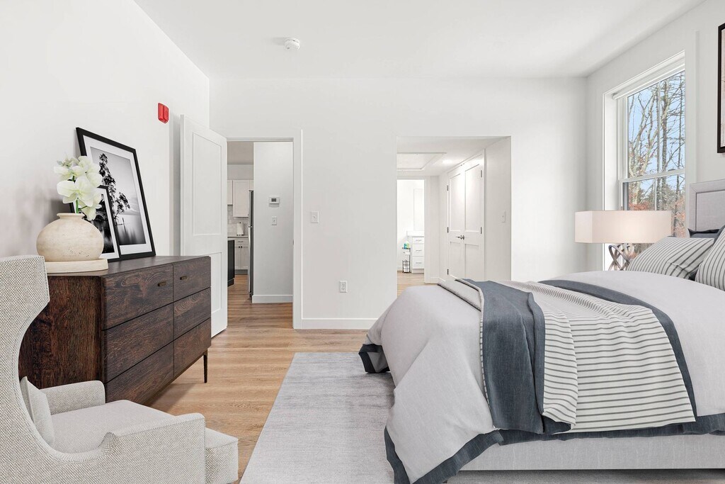 Discover quiet suburban living in this newly built two-bedroom, two-bath apartment at 54 Wyndham Road, Unit 101. Enjoy high-end finishes including quartz countertops, stainless steel appliances, and in-unit laundry. The primary bedroom features an ensuite bath for added comfort. Relax on your private patio overlooking a spacious green area, or take advantage of garage parking and central air conditioning. This boutique-style community offers a calm, small-town atmosphere while keeping you close to everything.