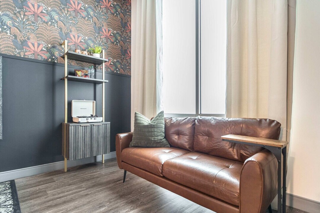 The advertised rate of $1,750/month is the lowest available price, based on a 30 day(s) stay with a move-in date of May 3, 2026. Rates vary depending on the duration of stay, season, and other parameters. For exact pricing and additional pricing components, please visit our website and enter your desired move-in and move-out dates. The rate is applicable when billed upfront; it can be higher if billed in multiple payments. Feel at home in this dark and moody retreat in downtown Macon, just minutes from Mercer University, restaurants, and live music venues. This stylish apartment features floor-to-ceiling windows and bold design elements. Inspired by Otis Redding, this hideaway blends deep tones, layered textures, and dramatic lighting to create a rich and grounded atmosphere. The apartment includes a queen-size bed with soft linens, a smart TV, high-speed Wi-Fi, and a full kitchen with a stove, oven, refrigerator, microwave, coffee maker, cookware, and essentials. The private bathroom features a shower, fresh towels, and toiletries. Shared laundry facilities are available on-site on a first-come, first-served basis. Free on-site parking is available but limited and not guaranteed. Metered street parking may also be available nearby. Located right next door to Mercer Music at Capricorn, this apartment is also 0.8 miles from Mercer University, 0.4 miles from The Tubman Museum and the Georgia Sports Hall of Fame, 0.5 miles from Macon City Auditorium, 1.5 miles from Macon Coliseum, 0.5 miles from The Rookery, 0.6 miles from Hargray Capitol Theatre, 0.7 miles from H&H Restaurant, and 1 mile from the Otis Redding Statue and Amphitheater. Quiet hours are from 10 PM to 8 AM. A warning will be issued for noise complaints; a second complaint may result in removal from the property without refund. Smoking is strictly prohibited inside the unit, in common areas, and on the property. Parties, events, and disruptive behavior are not permitted. Pets are not allowed. Do not move furniture, décor, or appliances. Tampering with Wi-Fi routers, smart devices, security cameras, or locks is strictly prohibited. Mail or package delivery is not allowed. The host/property is not responsible for lost, delayed, or returned deliveries. No glitter, confetti, glue, or paint. Any added décor must be approved in advance and removed before checkout. The dryers are currently under repair. Registration Number: STVR000095 [SI]