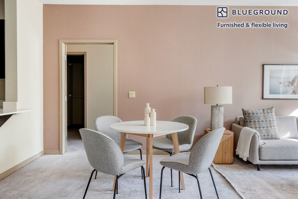 Fotos Próximamente Estas fotos de muestra están pensadas para darte una idea del estilo de diseño de Blueground. La disposición y el mobiliario están sujetos a cambios. Este apartamento estará listo para la fecha indicada. ¡Sea el primero en alquilar! Ofrecemos precios personalizados para cualquier duración. Las tarifas pueden variar según las fechas exactas de llegada y salida. La tarifa para esta casa comienza a partir de $3,680*/mes. Visite nuestro sitio web e introduzca sus fechas de estancia para ver los precios actualizados de su reserva específica. *El precio cotizado es: (1) basado en la mudanza en el primer día en que la unidad esté disponible, (2) aplicable solo si se factura por adelantado; puede ser mayor si se factura en múltiples pagos, (3) sin incluir impuestos ni servicios públicos. Siéntete como en casa dondequiera que elijas vivir con Blueground. Le encantará este amplio apartamento de dos dormitorios amueblado en Dublín con su decoración moderna, cocina totalmente equipada y cómoda sala de estar. Con una ubicación ideal, está cerca de todo lo mejor que East Bay tiene para ofrecer. (ID #SFO1420) Diseñado pensando en usted Al igual que con cualquier apartamento Blueground, encontrará un espacio cuidadosamente diseñado con hermosos muebles y una cocina totalmente equipada en este hotel de dos dormitorios. Además, gracias a nuestros colchones, sábanas y toallas de primera calidad, puede relajarse sabiendo que siempre se sentirá como en casa. Cuando esté listo para divertirse, puede disfrutar del ambiente de East Bay o traerle el entretenimiento con el altavoz inalámbrico premium o el televisor inteligente. Este apartamento también ofrece lavandería en el apartamento. Cama King para dormir, cama Queen de 70,8 pulgadas/180 cm , comodidades de 63 pulgadas/160 cm Los servicios del edificio exclusivos de este dormitorio incluyen: - Área de barbacoa - Secador - Ascensor - Sala de juegos - Gimnasio - Piscina - Lavadora - Lounge - Estacionamiento - Se permiten mascotas ¡ Llega y asistencia continua ! ¡Todo el apartamento es suyo! Un miembro del equipo de Blueground te dará la bienvenida personalmente o te dará instrucciones para el auto check-in. Durante su estancia, tendrá acceso a nuestro equipo de experiencia del cliente a través de la aplicación Blueground. Puedes programar limpiezas adicionales, enviar solicitudes de mantenimiento y ver las recomendaciones de nuestros vecindarios con solo unos pocos toques. Compartiremos todos los detalles tras la confirmación de su estancia. Ubicación ideal Este apartamento amueblado está ubicado en Dublín, una comunidad ubicada en la región East Bay de Silicon Valley, a unos 35 kilómetros al este de Oakland y a 58 kilómetros al este de San Francisco. Esta conveniente ciudad tiene todo lo que los recién llegados al área de la bahía necesitan. A los cocineros caseros les encantará estar cerca de Safeway, Trader Joe's y Whole Foods, mientras que aquellos que prefieran cenar afuera y pedir comida se encontrarán con una gran variedad de opciones. Los compradores acuden en masa a San Francisco Premium Outlets para obtener ofertas en moda y artículos para el hogar de diseño. Dublín organiza un festival masivo cada marzo para el Día de San Patricio. La ciudad tiene su propia estación BART, West Dublin/Pleasanton, para conexiones rápidas con San Francisco y el resto de Silicon Valley. Otras cosas a tener en cuenta Los servicios del edificio pueden tener un costo adicional. Este apartamento Blueground tiene opciones de arrendamiento flexibles, lo que te permite reservarlo por un mes, un año o más. Las mascotas son bienvenidas, aunque se aplican límites de peso y restricciones de raza y pueden incurrir en cargos. El estacionamiento se ofrece según la disponibilidad y está sujeto a un cargo.